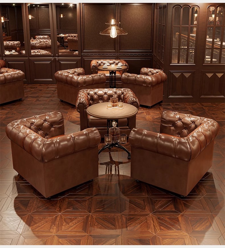 小酒馆沙发椅威士忌吧清吧卡座沙发音乐餐吧雪茄吧单人沙发工厂