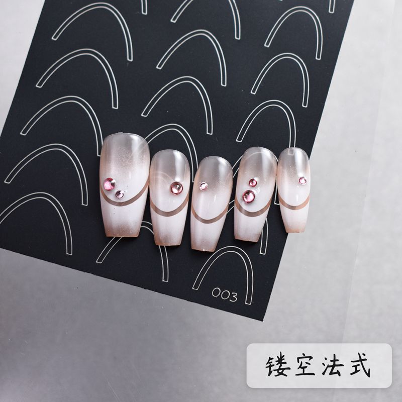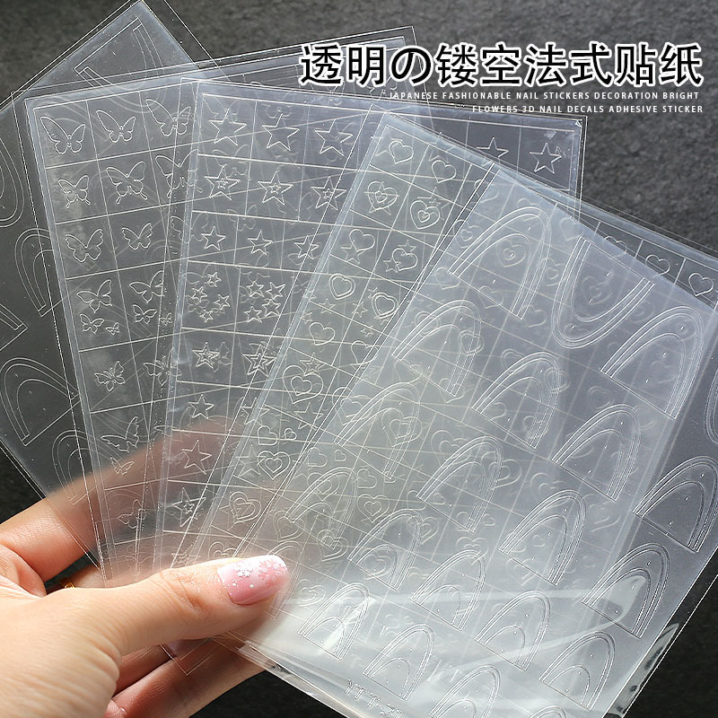透明法式镂空美甲贴纸新款蝴蝶克罗心定位线喷绘模版拍拍胶辅助贴
