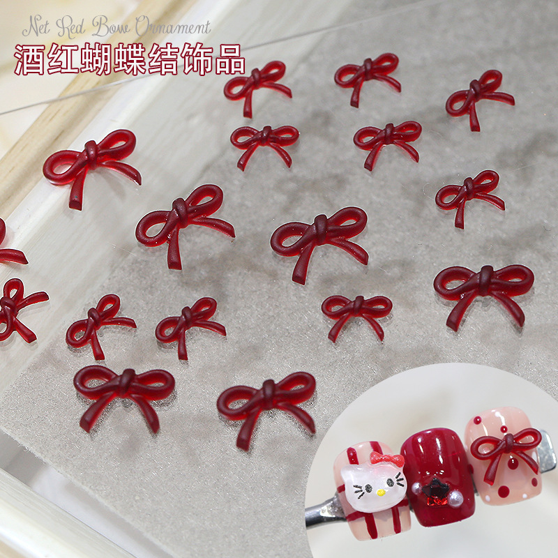 赤い書道式のワインの赤い蝶結びのネイルアートは車のセンチの赤いミニ樹脂のアクセサリーの爪を飾って卸売りします。