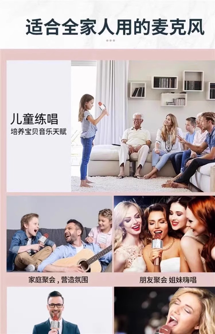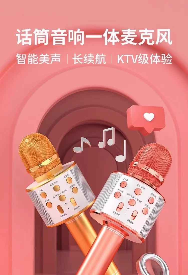 WS858携帯カラオケ機 家庭用ktv ワイヤレスBluetoothコンデンサーマイク 子供用カラオケマイクスピーカー一体型