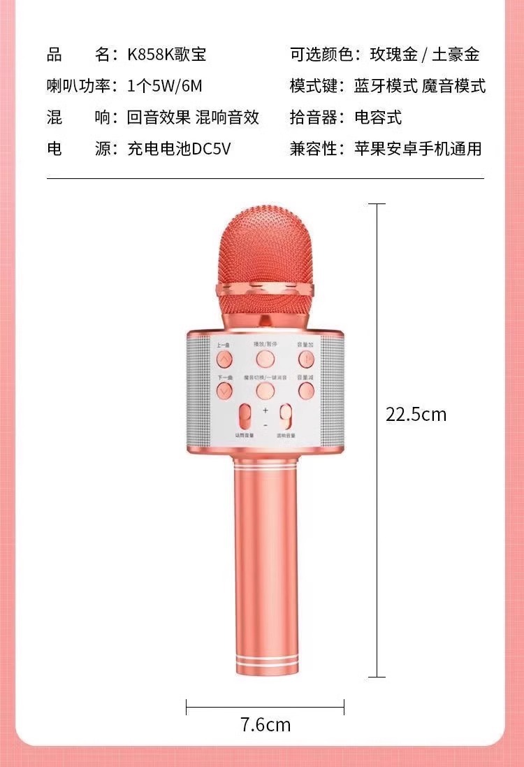 国境を越えた携帯電話国民カラオケ 858 マイクマイクオーディオ統合カラオケライブブロードキャスト Bluetooth ワイヤレスマイク