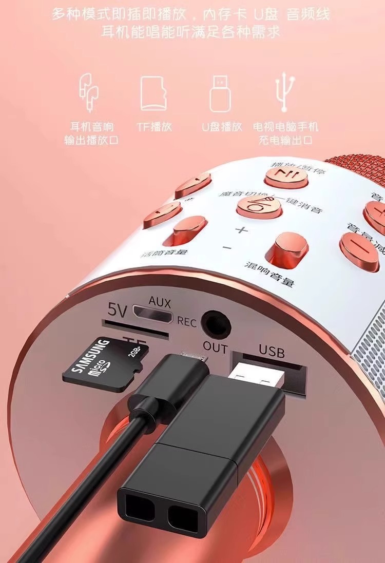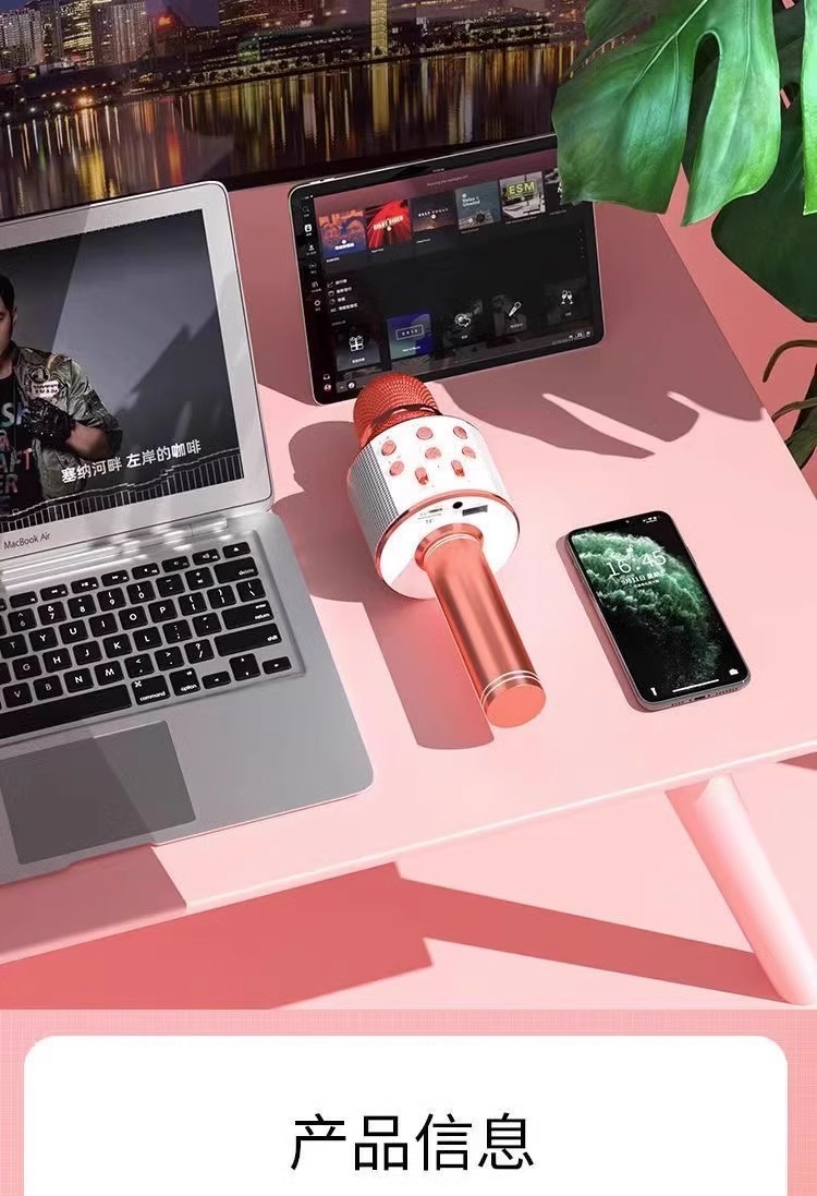 WS858L ライト付きマイクスピーカー一体型コンデンサーマイク 携帯電話 子供用カラオケ ワイヤレスBluetooth 跨境