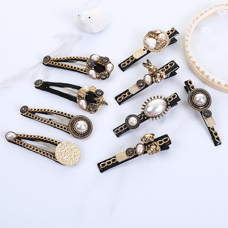 レトロなクマの形のヘアクリップ、パール付きヘアピン、女の子用ヘアクリップ、ダックビルクリップ、サイドクリップ、工場卸売、散髪や前髪用