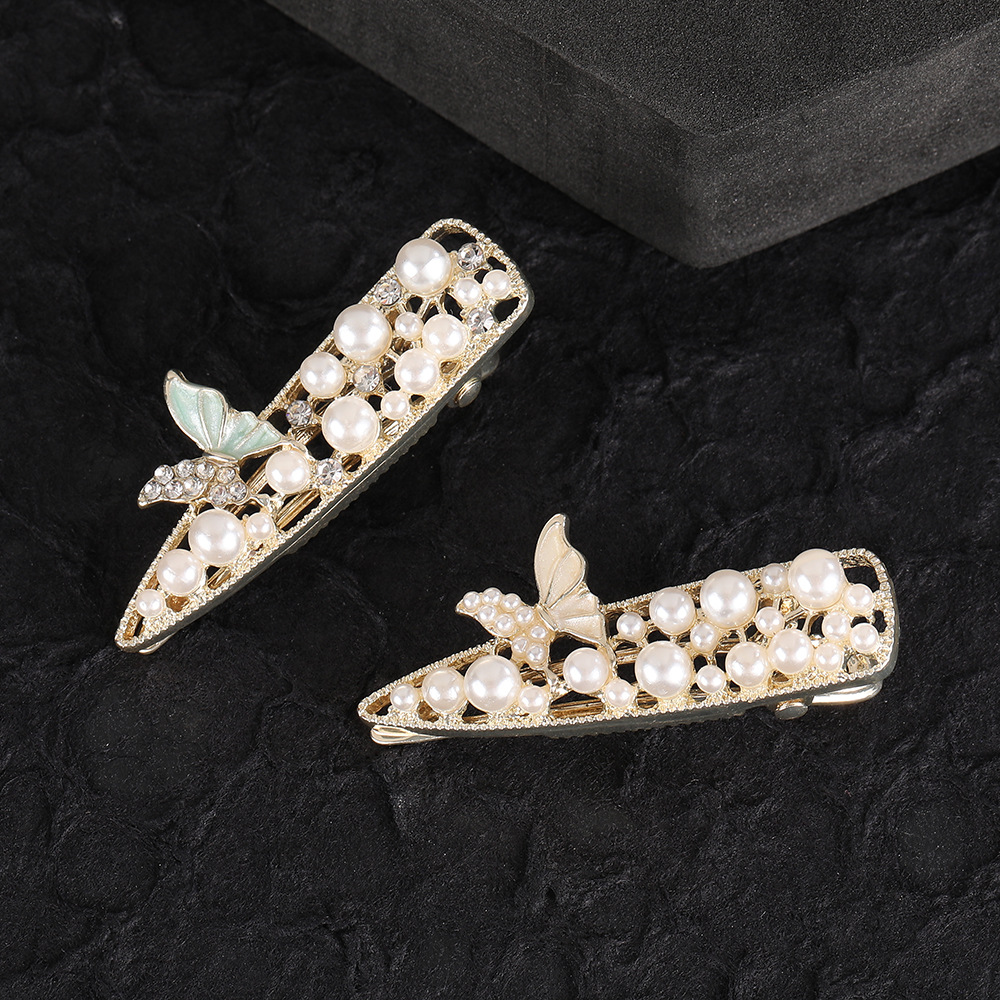 新商品の超仙の滴る油の蝶の真珠はドリルのヘアピンを入れてシンプルなサイドの前髪のカモの口を挟んで髪のカードの女性のアクセサリーを作ります。