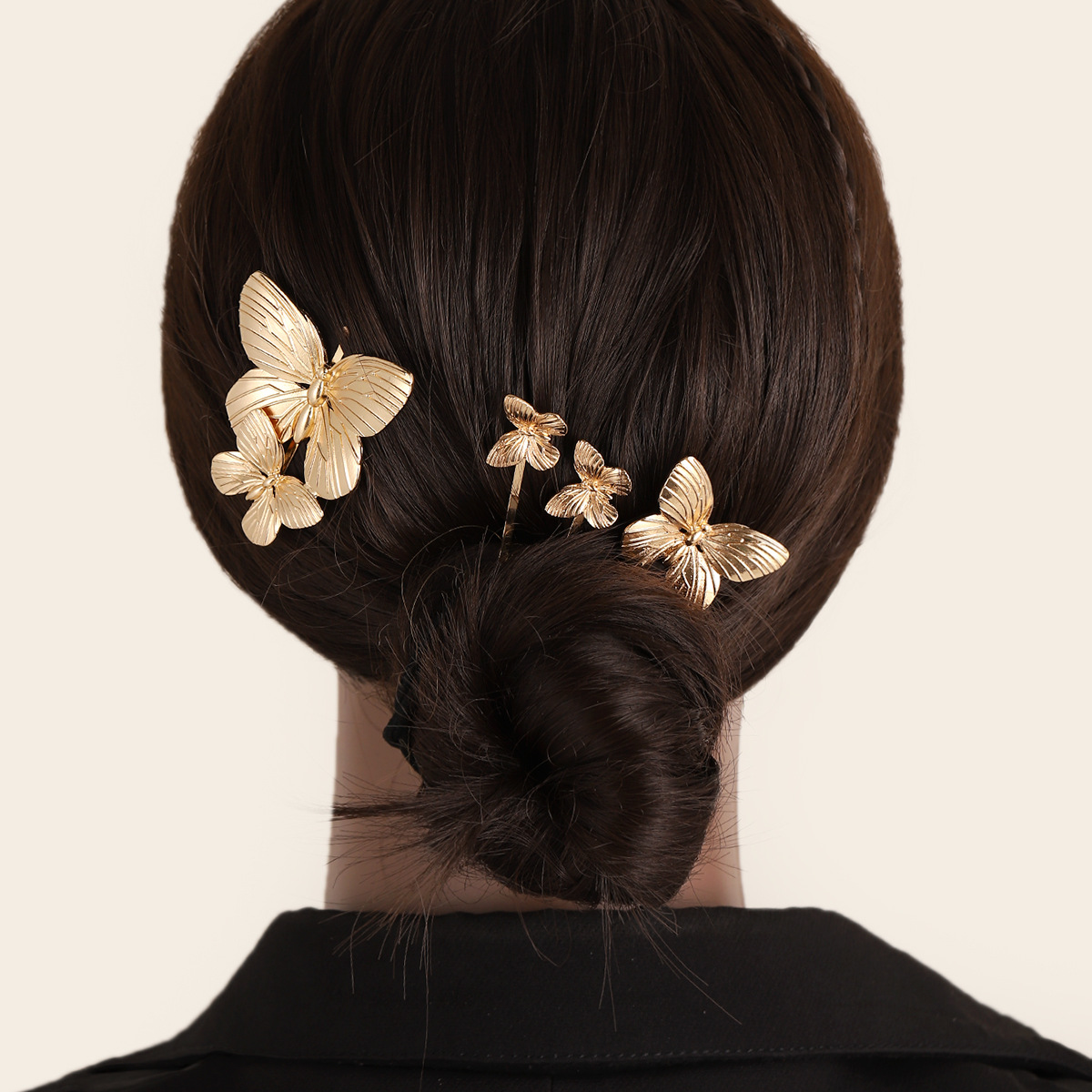 蝶流蘇真珠クリップ高級感女性気質後頭部半髪クリップ頭飾り金属中号髪クリップ