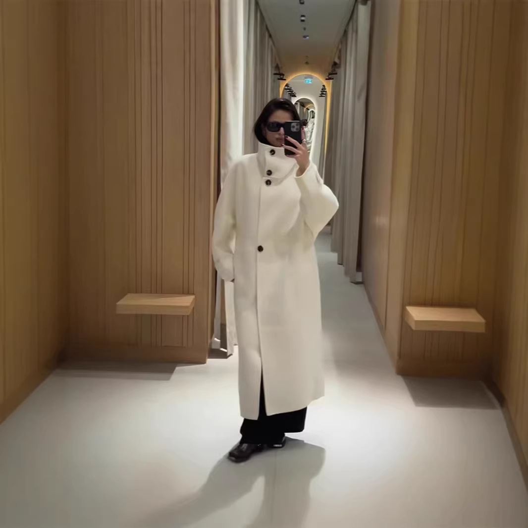 跨境货源2026新款立领长款呢子外套时尚韩系纯色宽松大衣外套女
