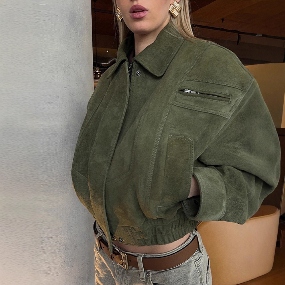 现货--跨境2026新款女装休闲短款拉链外套飞行员夹克宽松复古外套