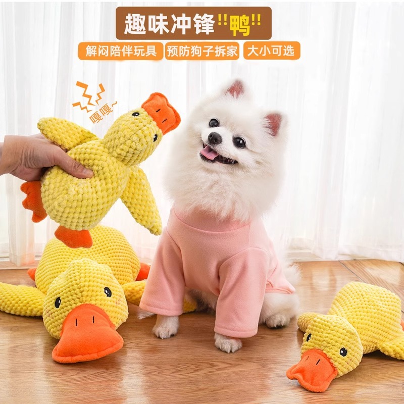 狗狗玩具毛绒陪睡小黄鸭耐咬磨牙解闷宠物玩具冲锋鸭小型犬狗玩具