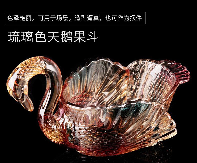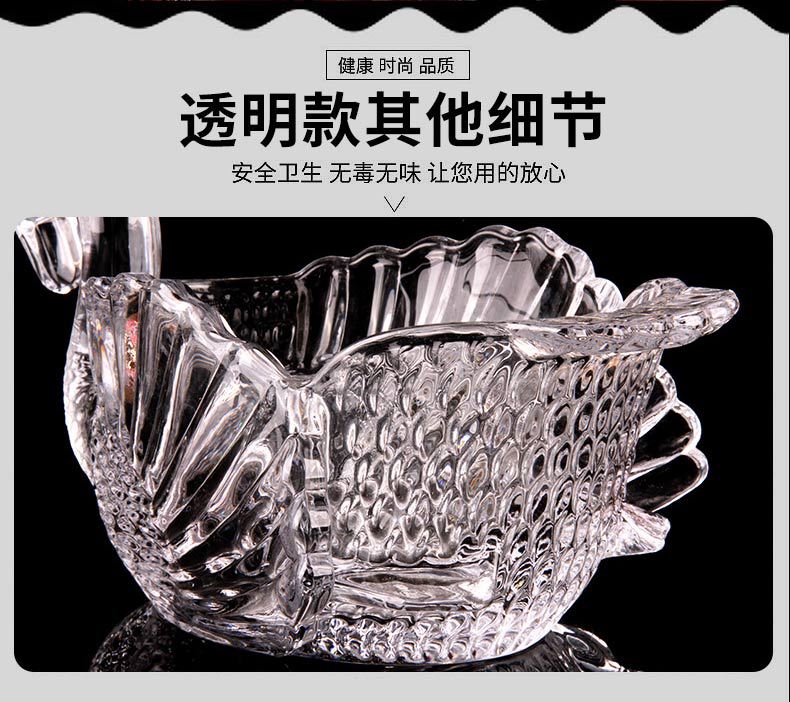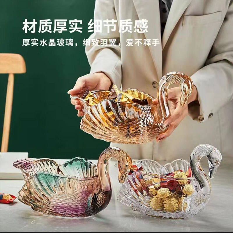 ヨーロッパのクリエイティブなガラスのフルーツプレート、カラフルな白鳥のフルーツバケツ、スナックプレート、ホームリビングルームのキャンディープレート、ドライフルーツプレート、フルーツプレート