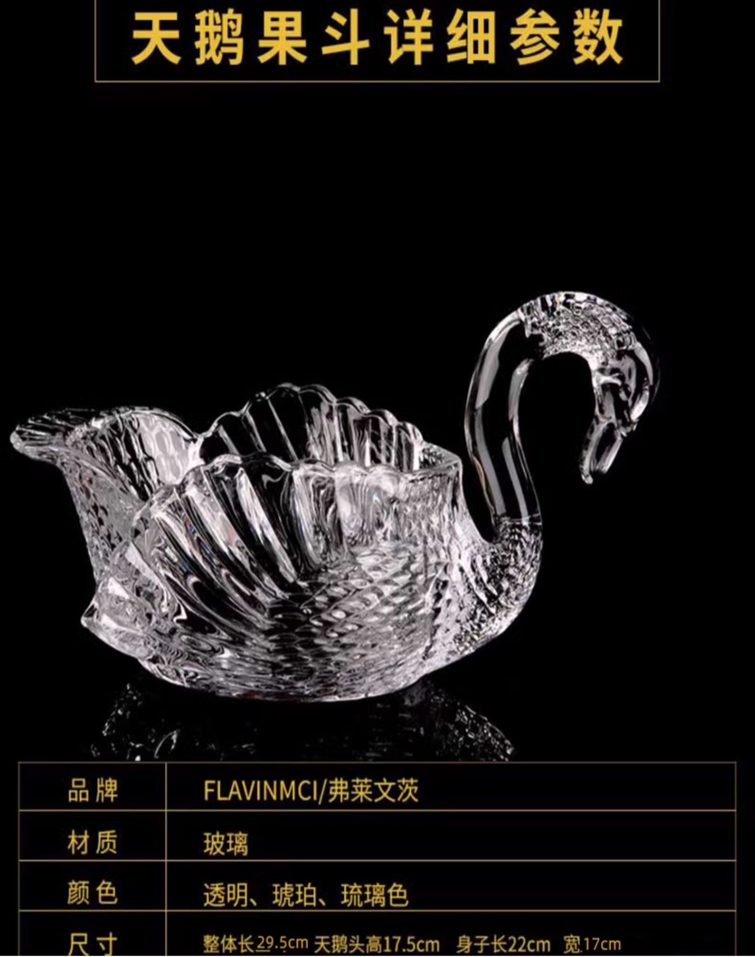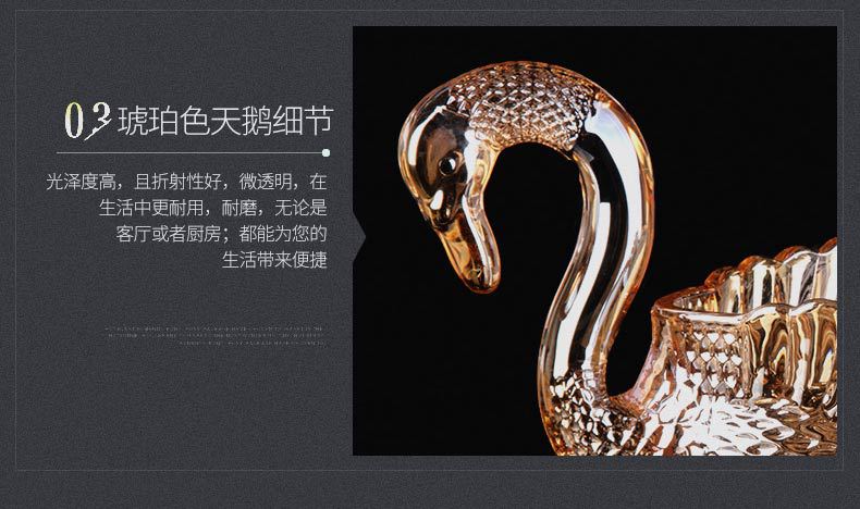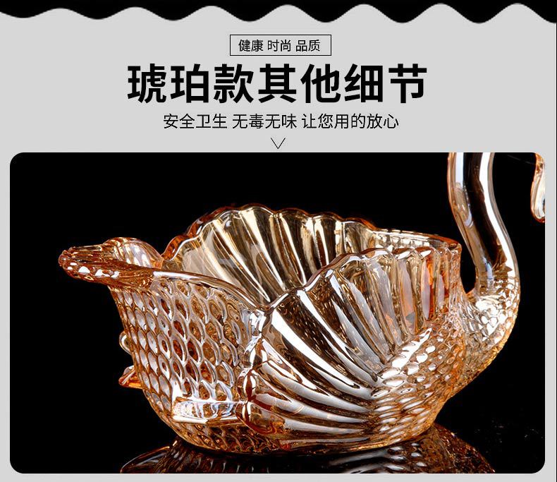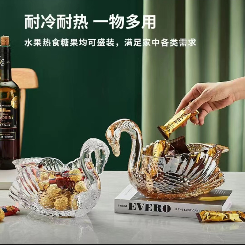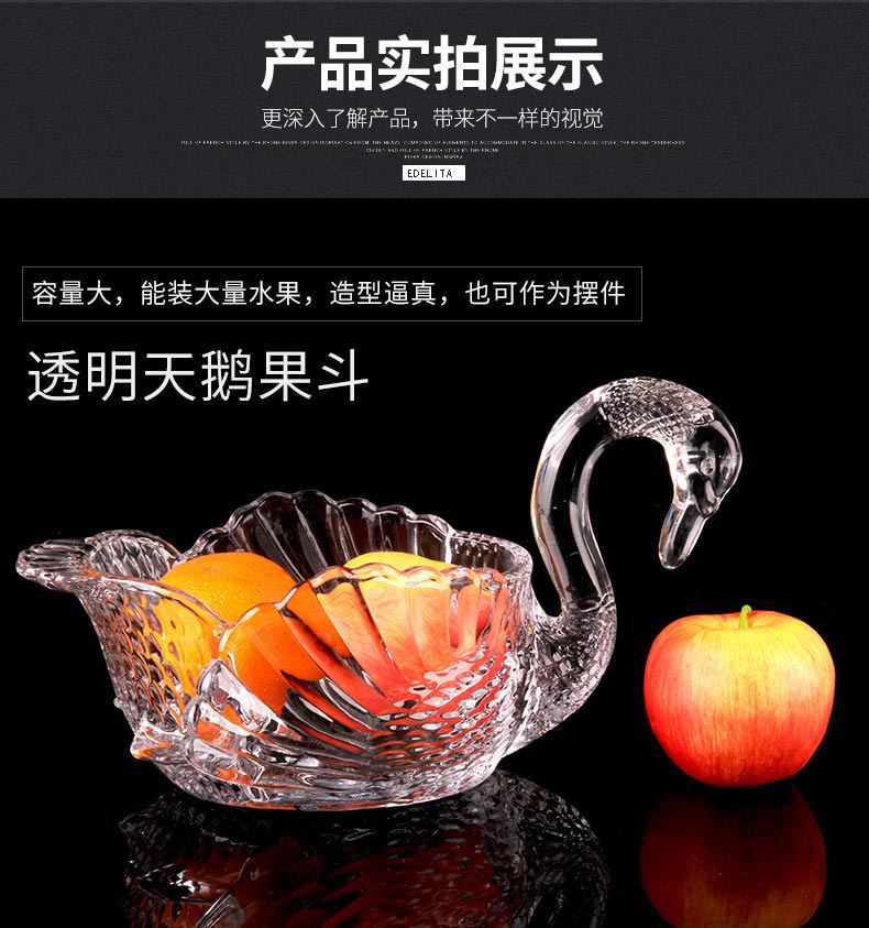 弗莱文茨玻璃水果盘欧式创意客厅婚庆乔迁礼物摆件天鹅果盘糖果盘