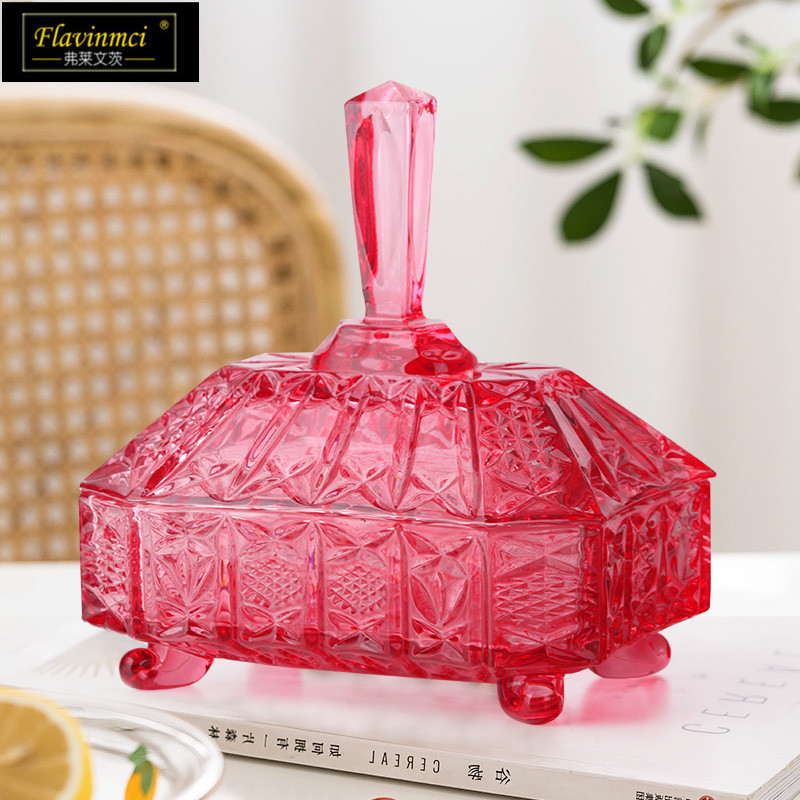 フレベンツヨーロッパ風ガラスキャンディー缶蓋付きドライフルーツ小食缶家庭用果物皿客間キャンディーカップ角糖シリンダー