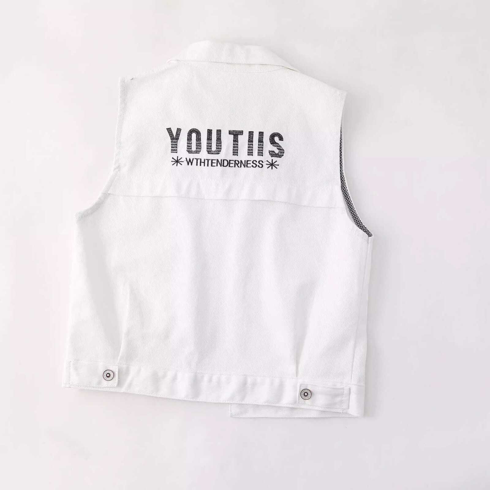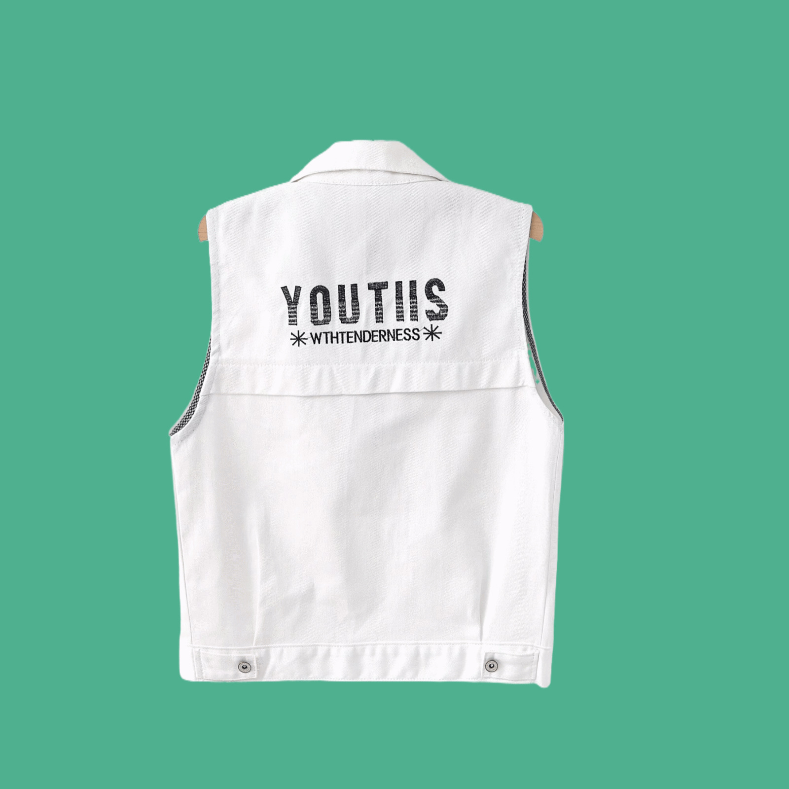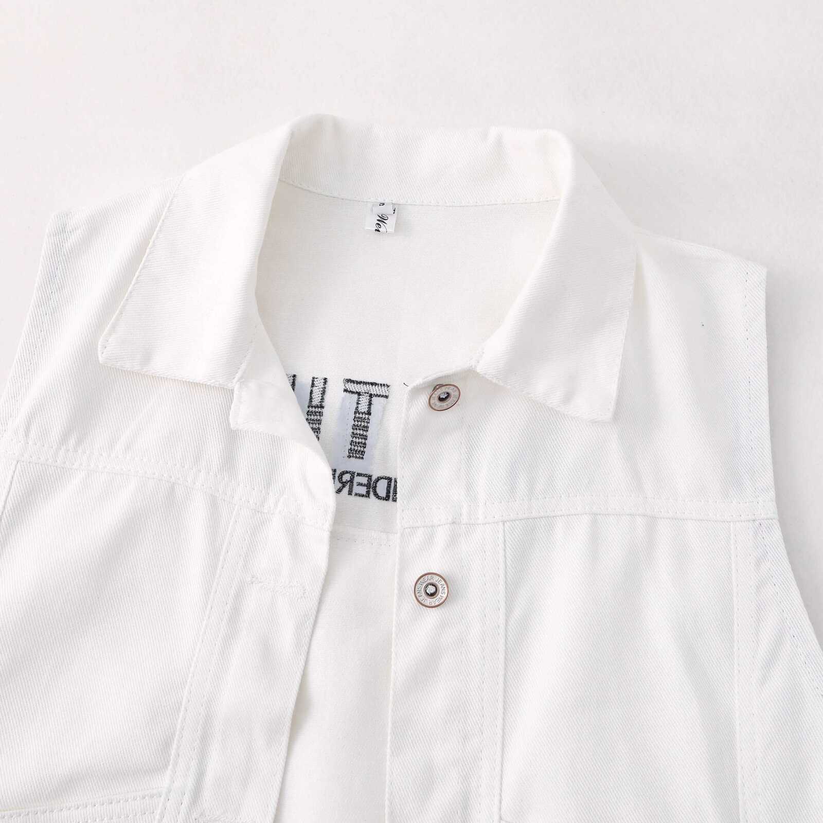 白い現物のデニムのベストの短いコートの男性の春の夏服の2024年の新型の韓国版のゆったりしている馬のベストの上着を挟みます。