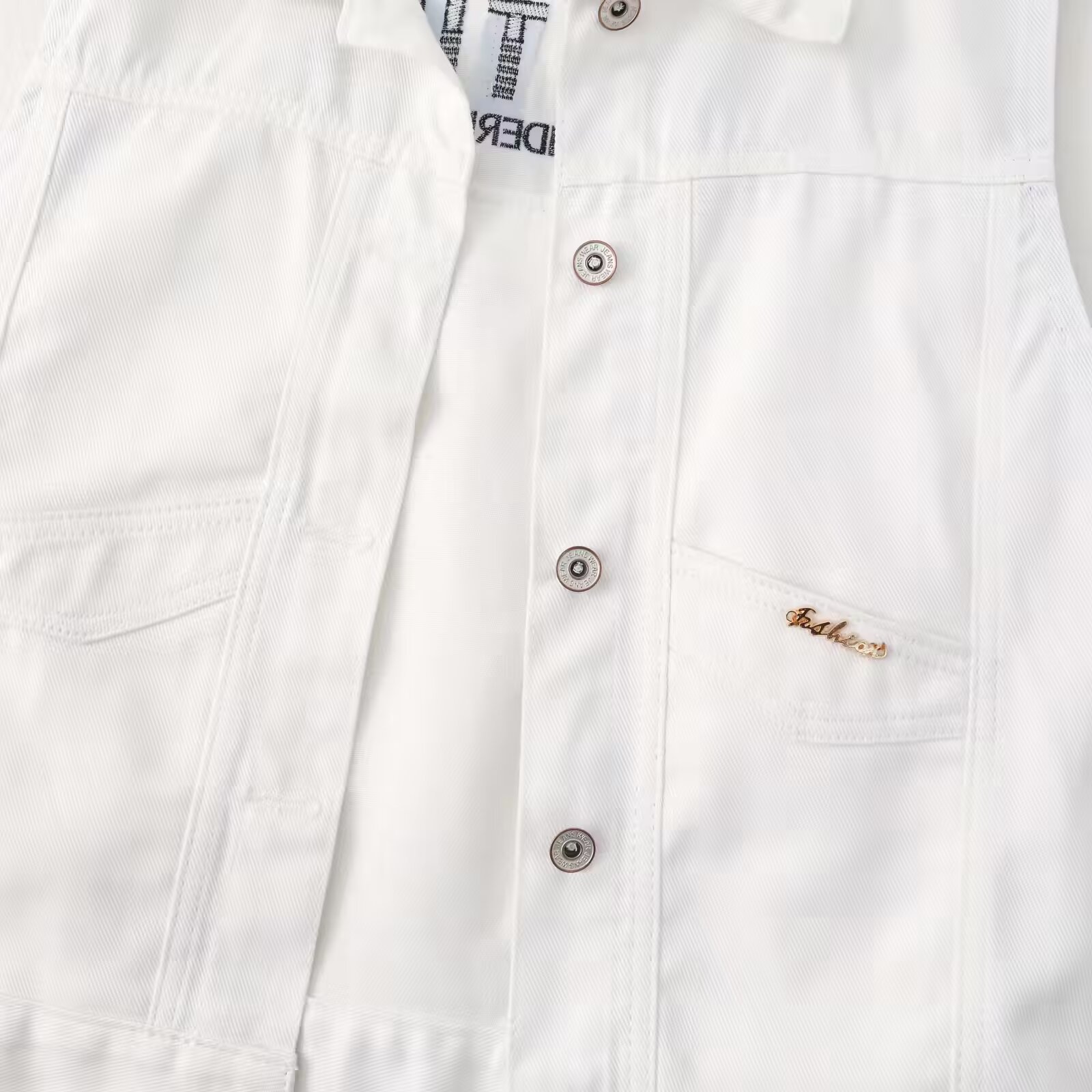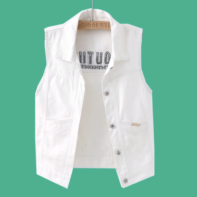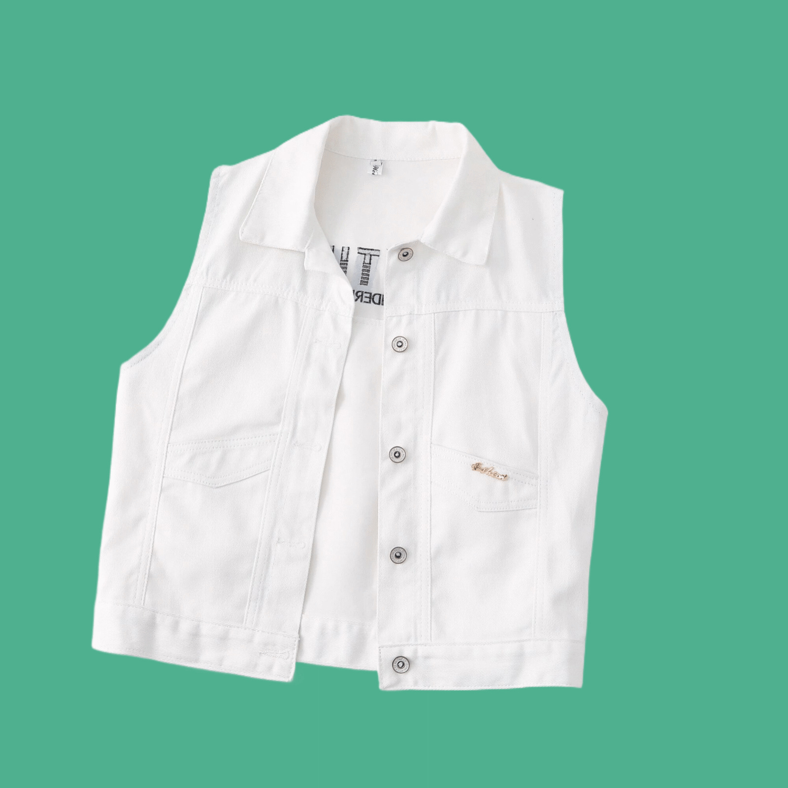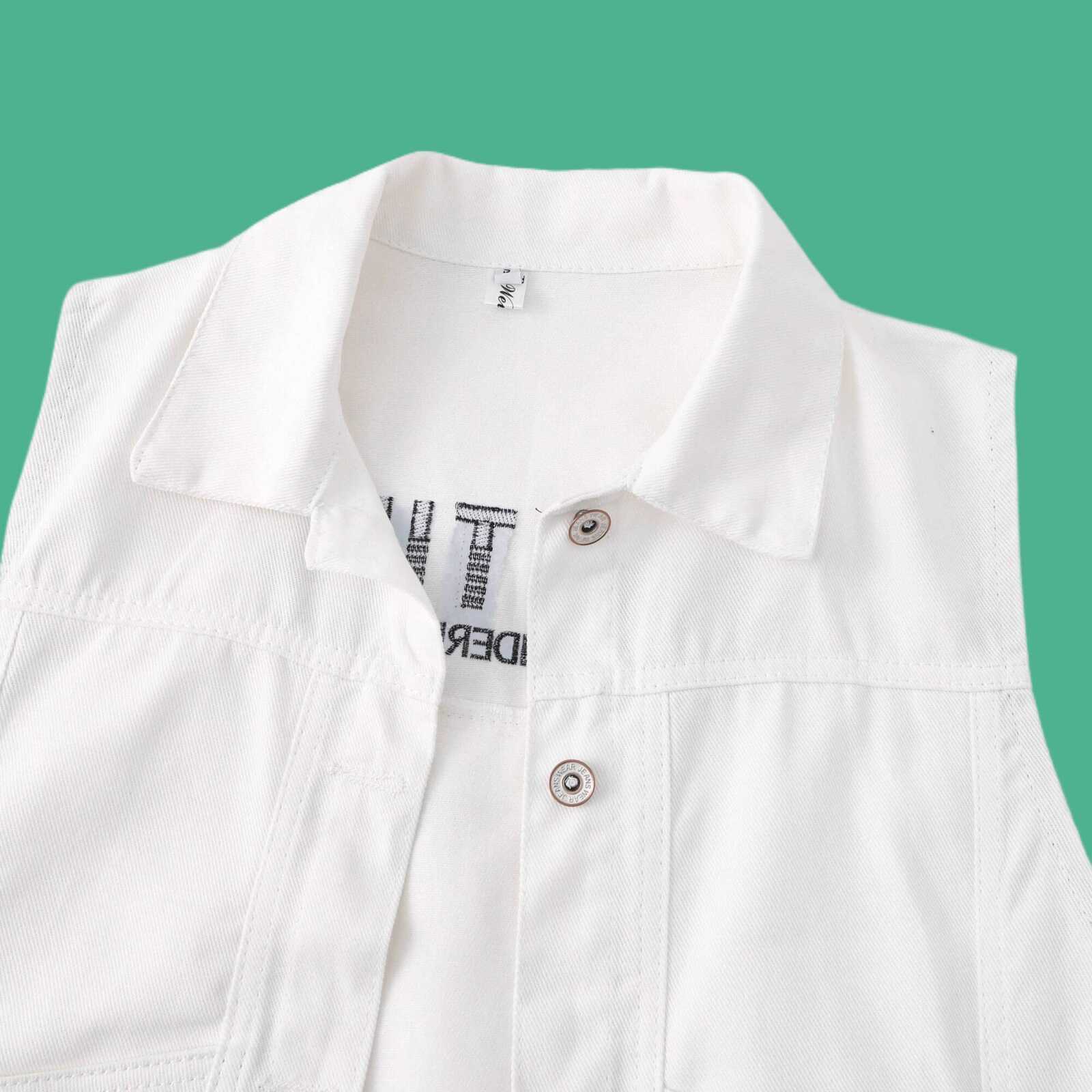 白い現物のデニムのベストの短いコートの男性の春の夏服の2024年の新型の韓国版のゆったりしている馬のベストの上着を挟みます。