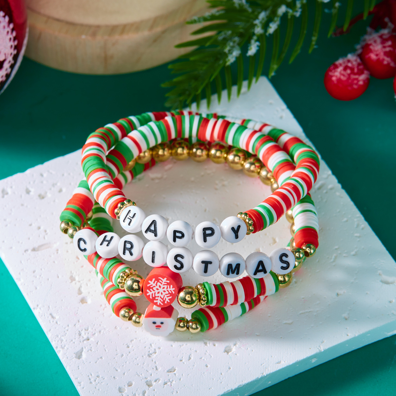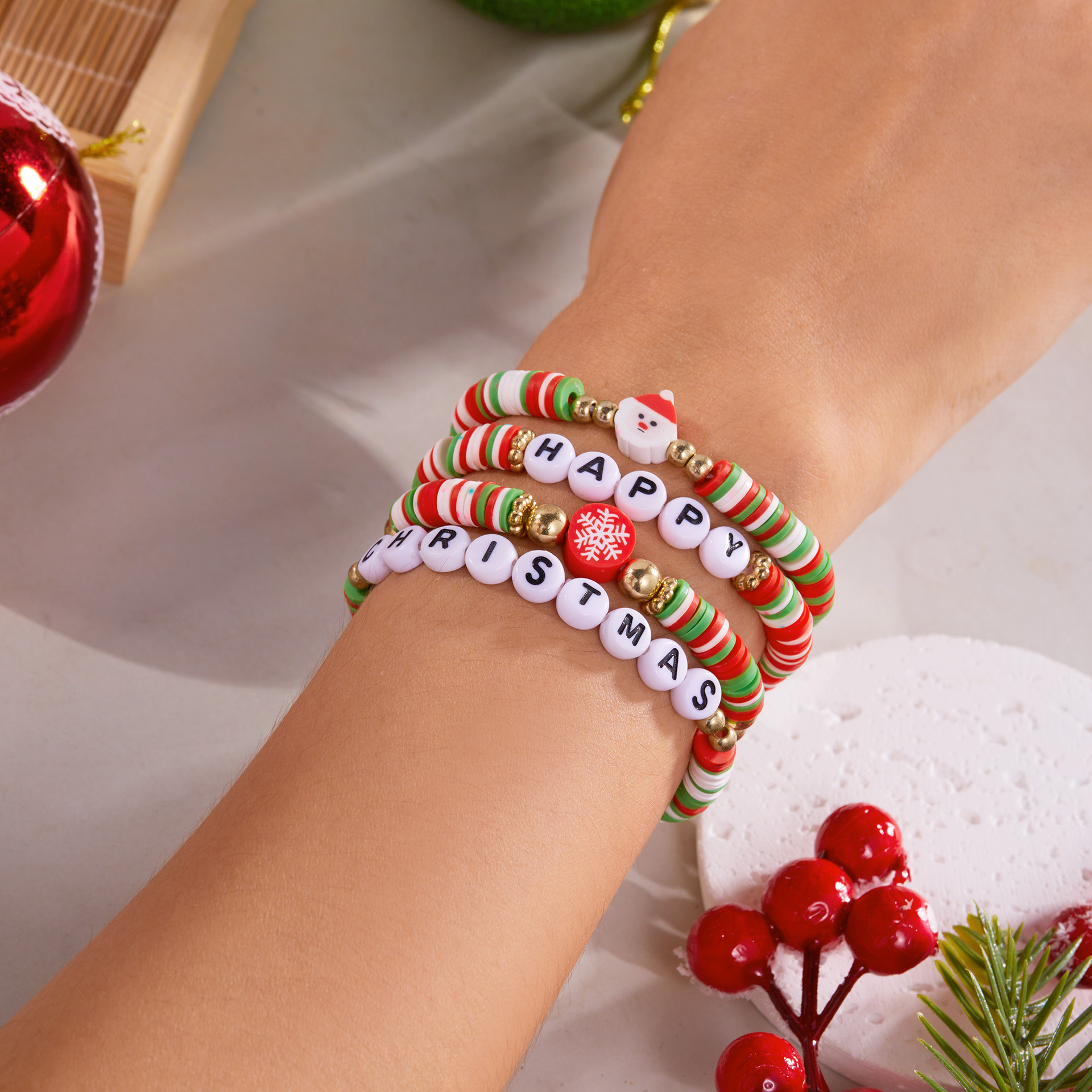 欧米のクロスボーダーのクリスマスのアクセサリの米の玉の柔らかい陶片の手作りの数珠のブレスレットのスーツのクリスマスの雪の花のアルファベットの手の女性