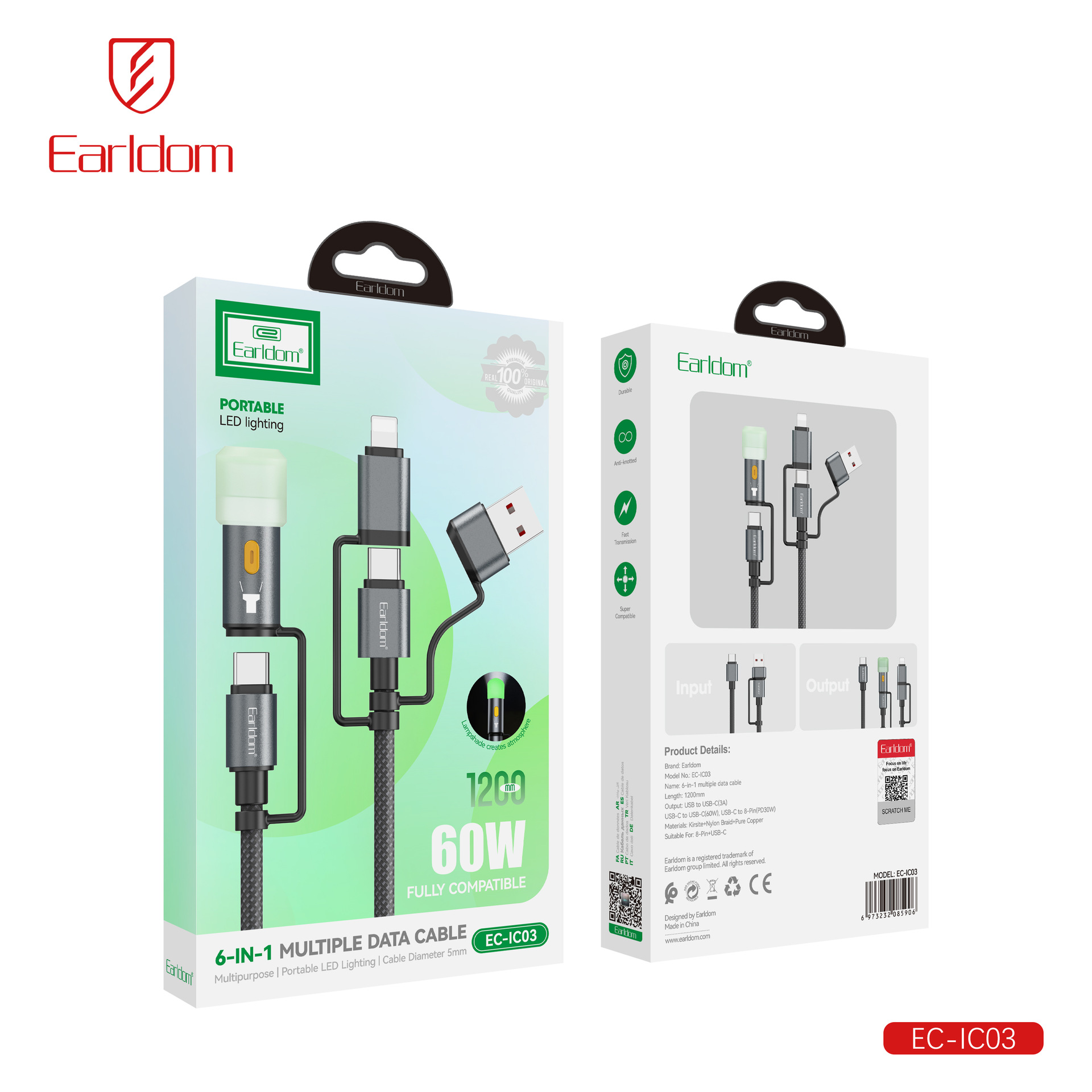 クロスボーダー・プライベート・モデル6-in-1多機能データ・ケーブル・TYPE-C・エクスプレスPD60W適用華為アップル・ライト付き
