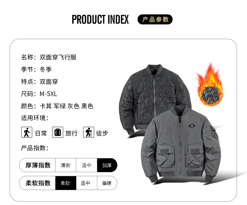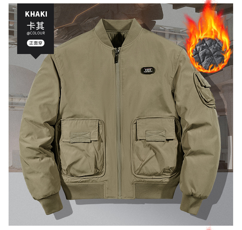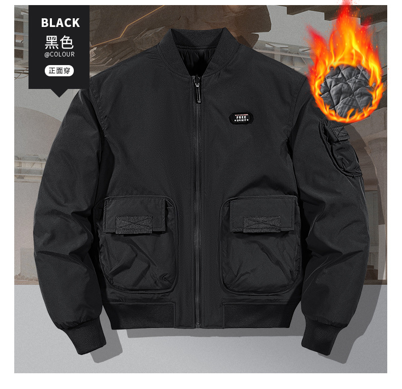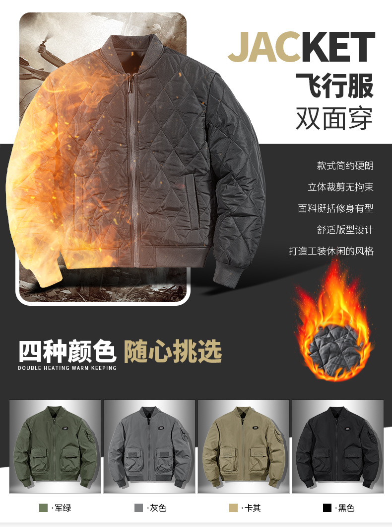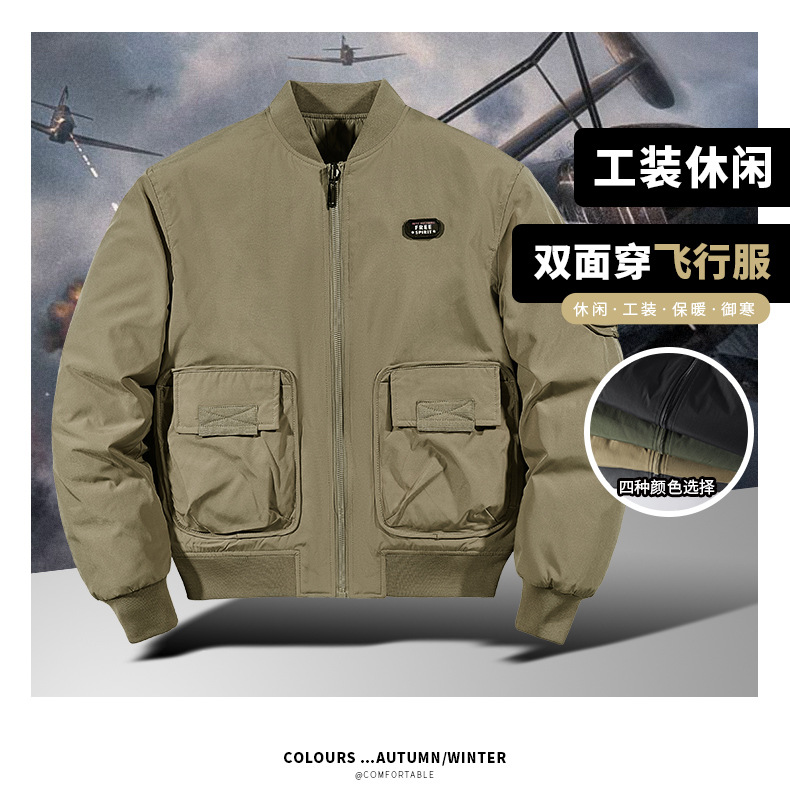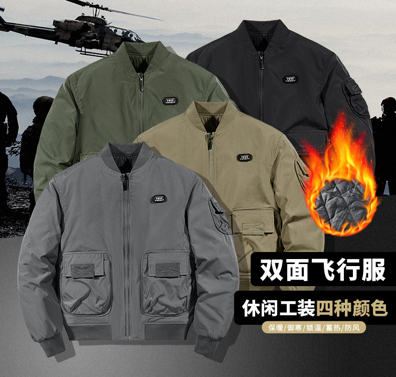工装綿衣男性春秋厚手冬型アメリカ式両面着ジャケットスポーツ野球服パイロットコート
