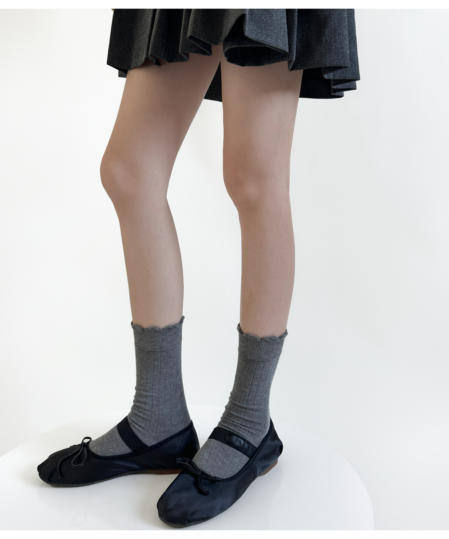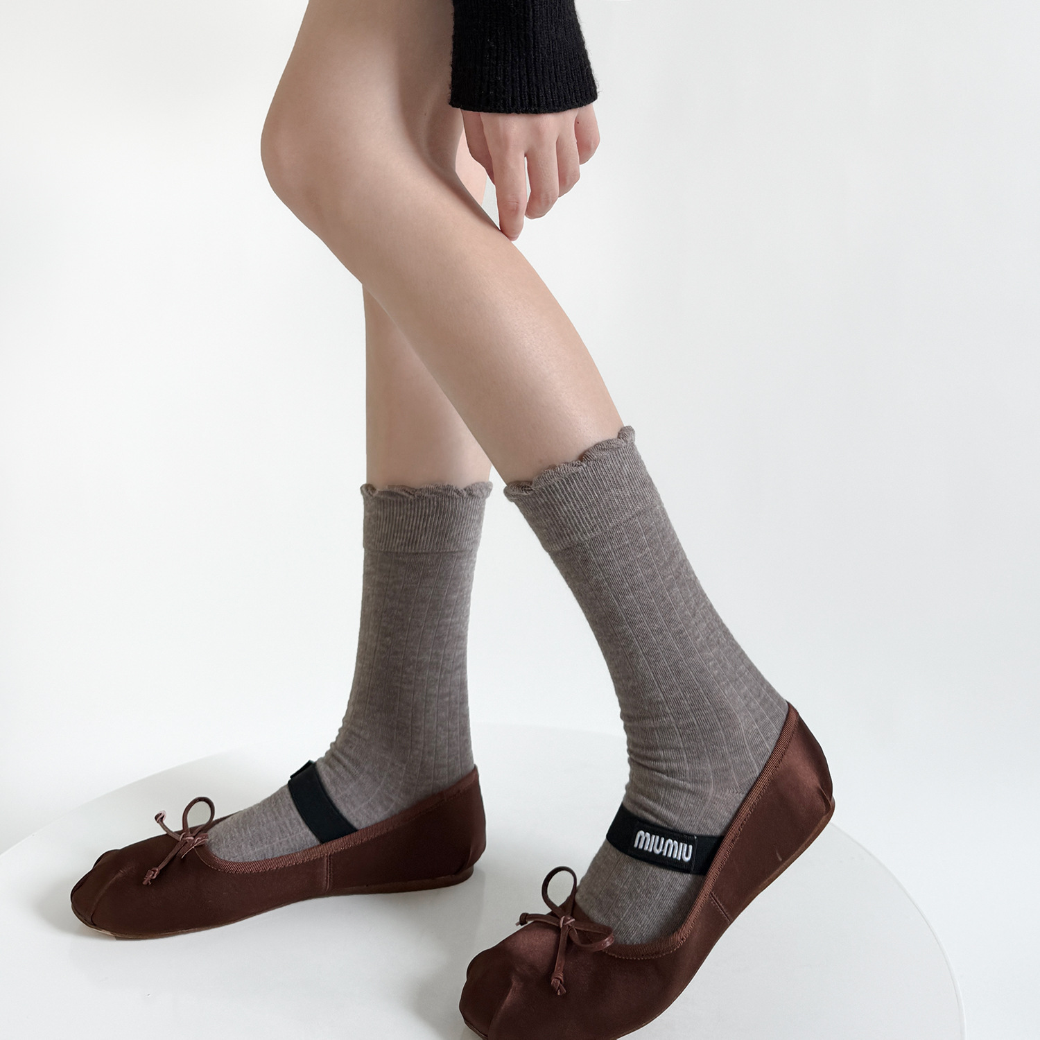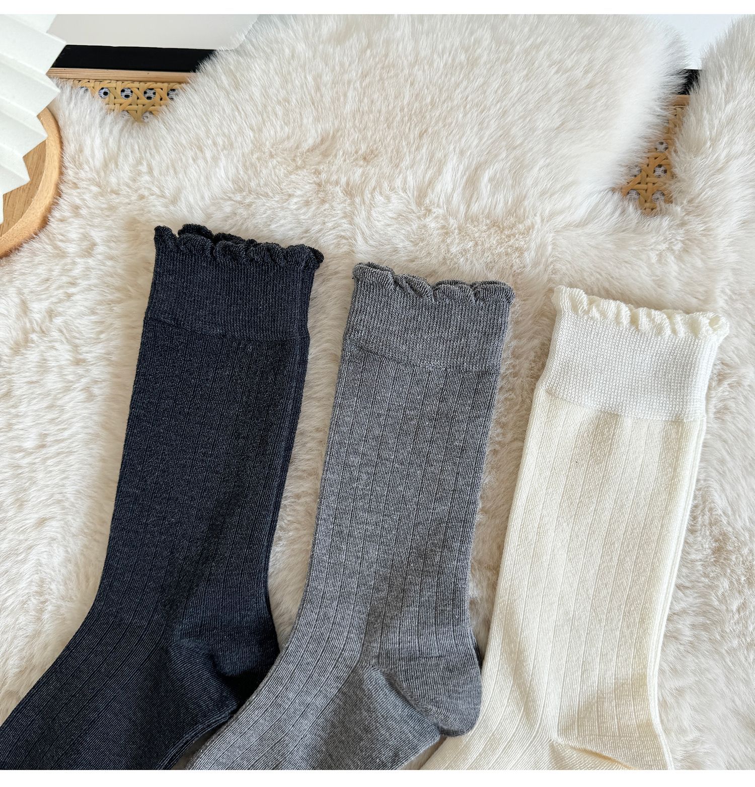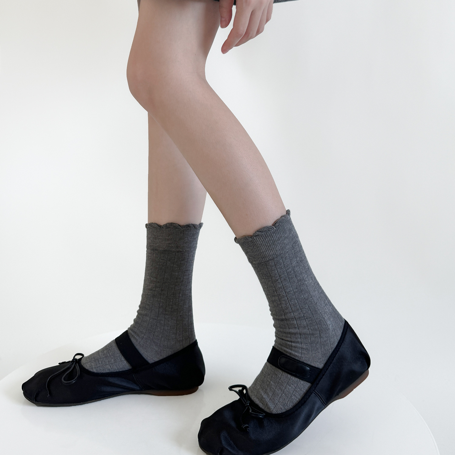 秋冬简约百搭棉袜中筒袜木耳边花边灰色短袜春秋堆堆袜搭配小皮鞋