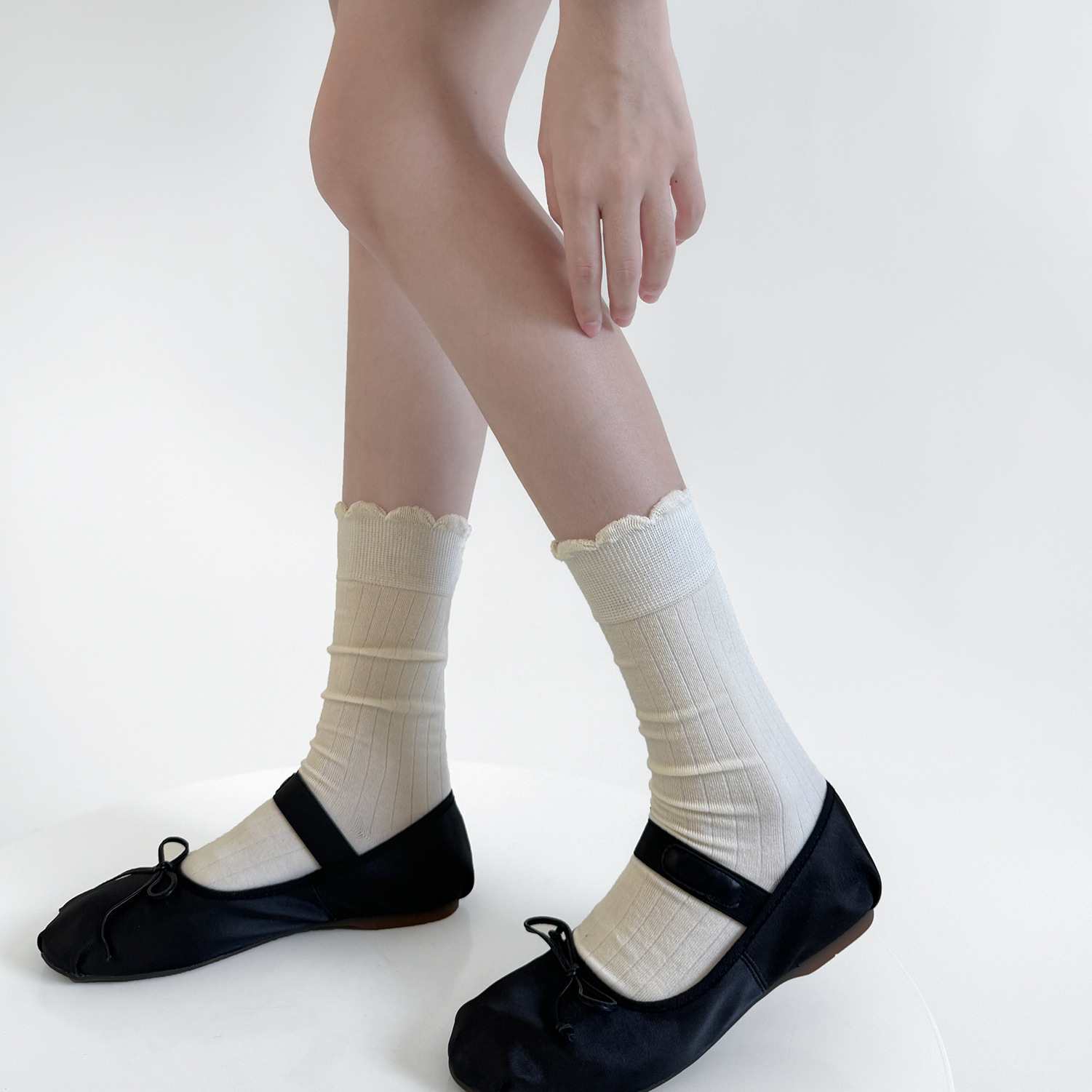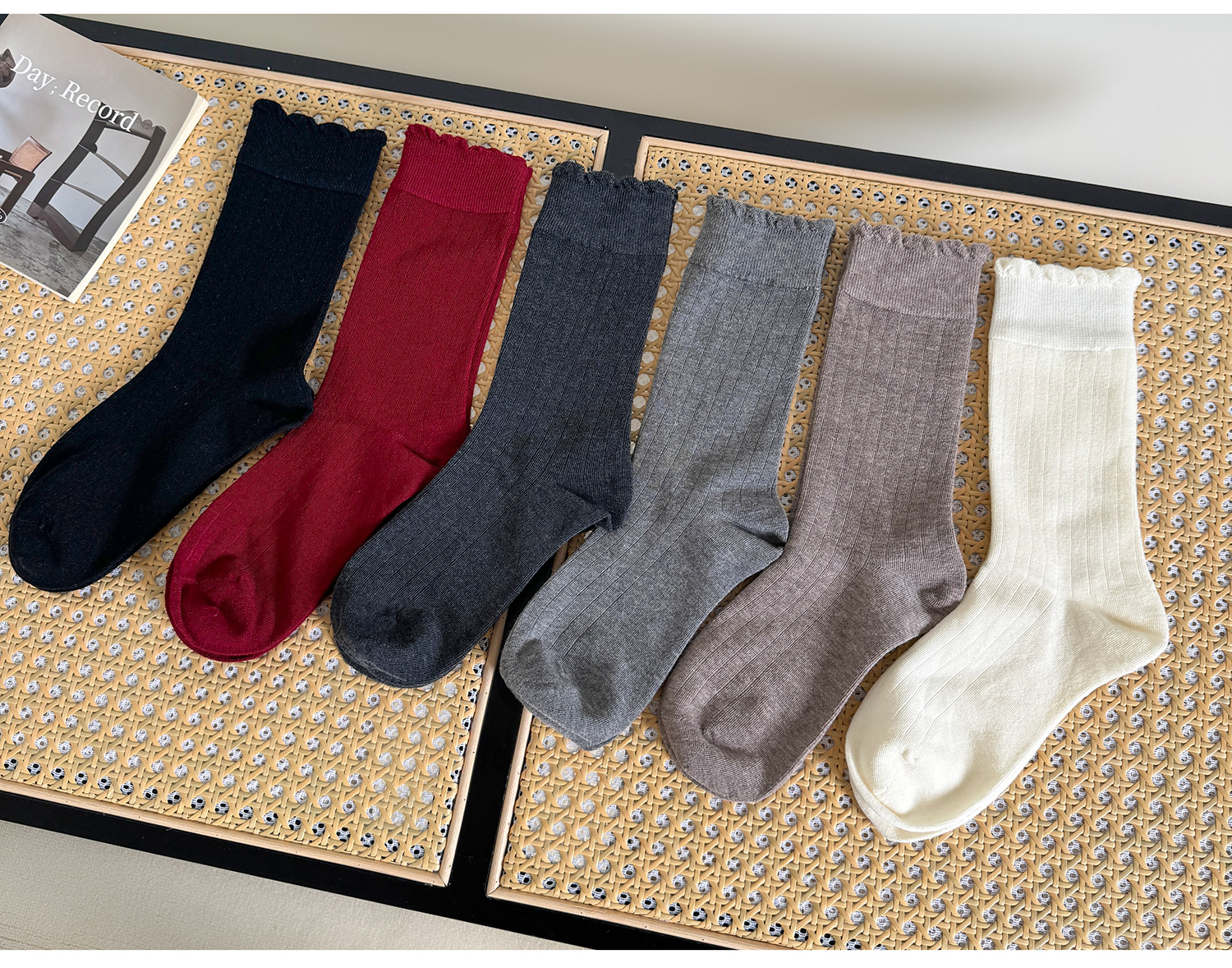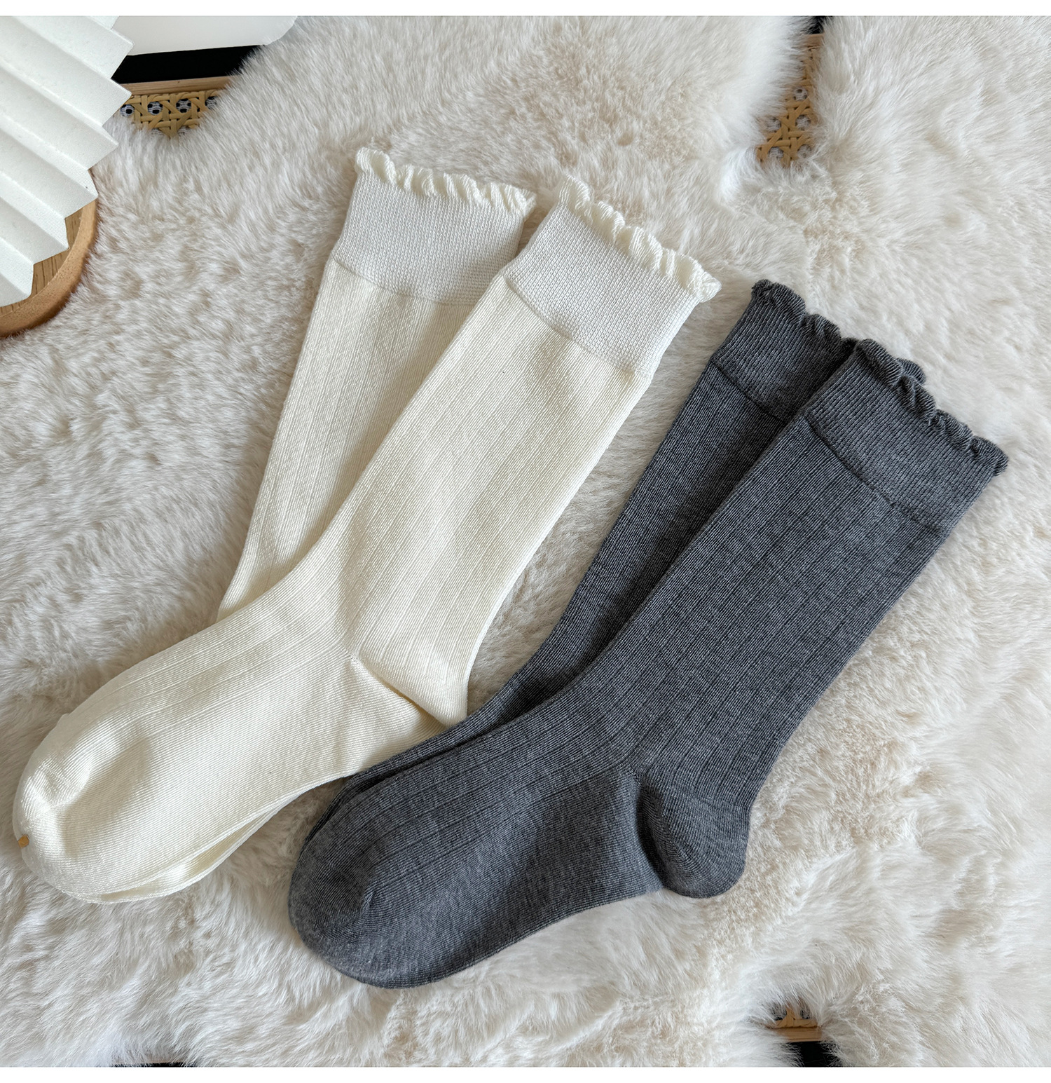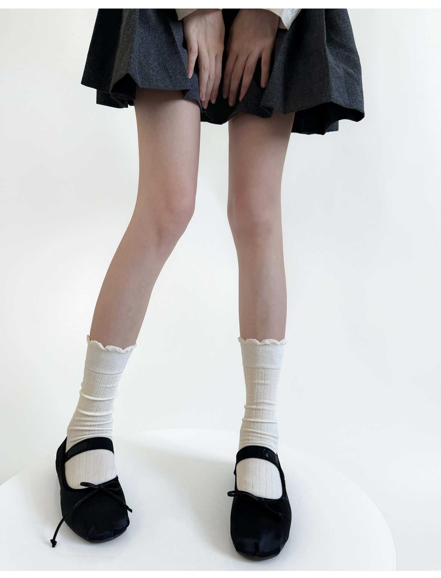 秋冬简约百搭棉袜中筒袜木耳边花边灰色短袜春秋堆堆袜搭配小皮鞋
