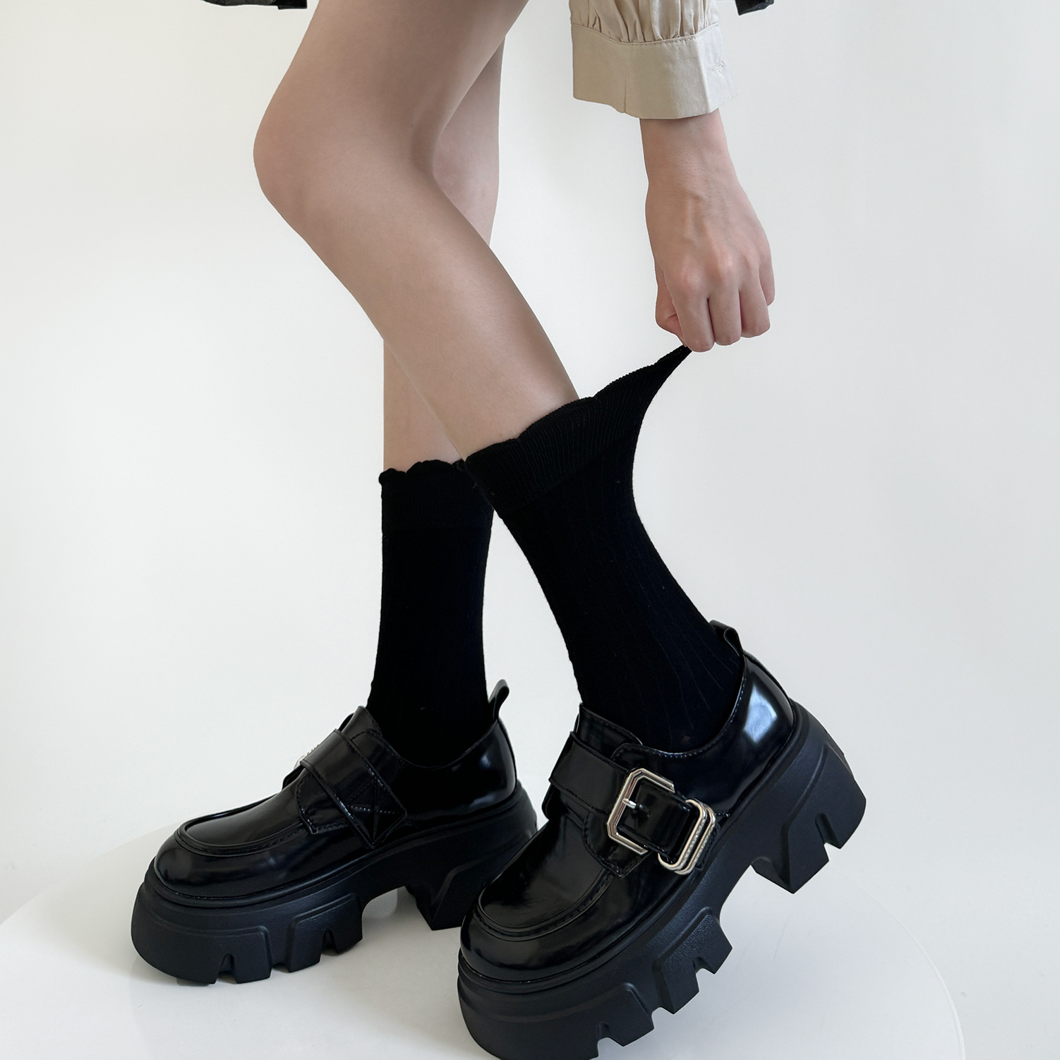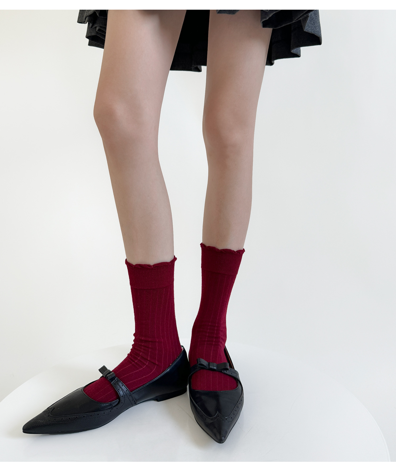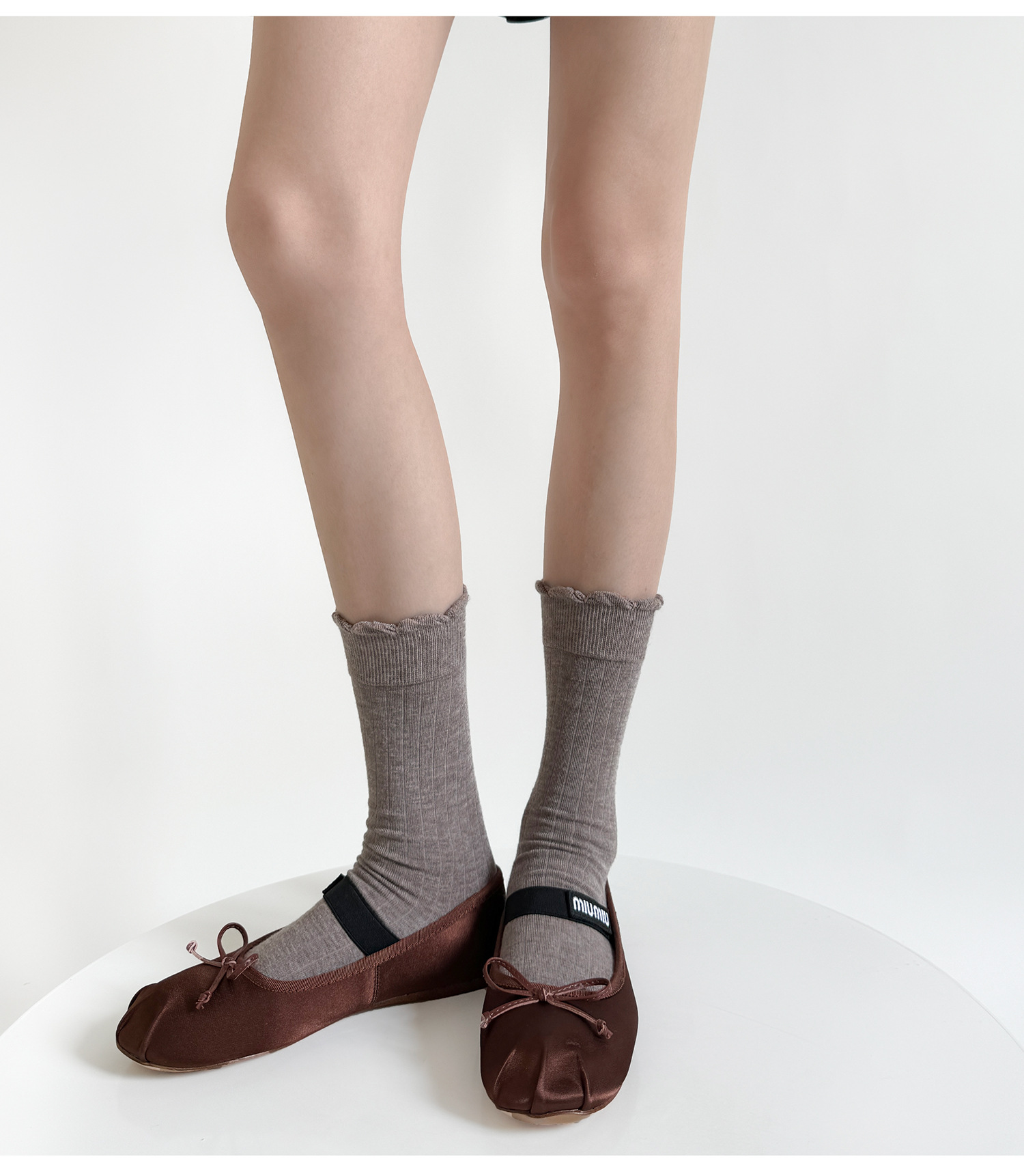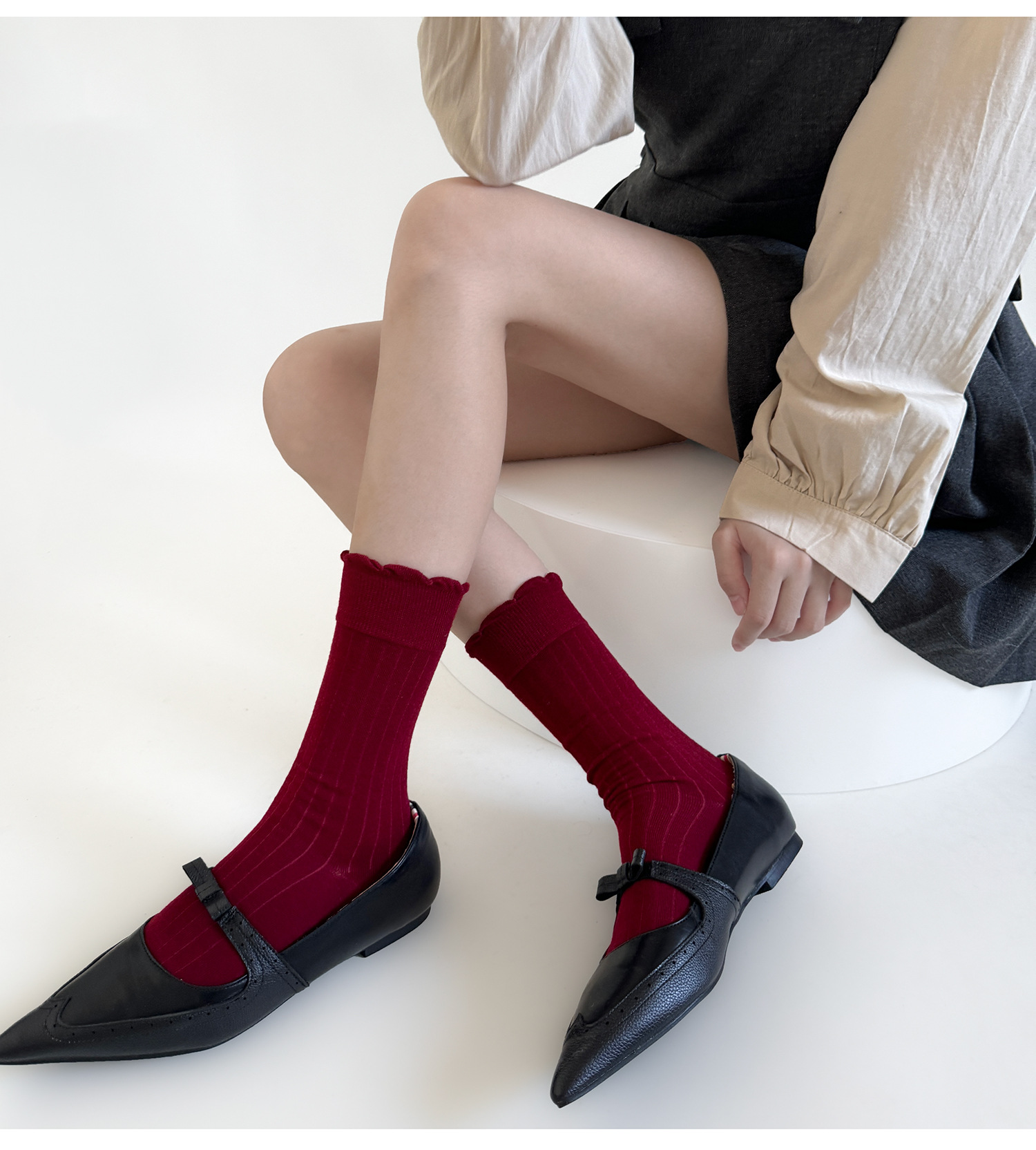秋冬简约百搭棉袜中筒袜木耳边花边灰色短袜春秋堆堆袜搭配小皮鞋