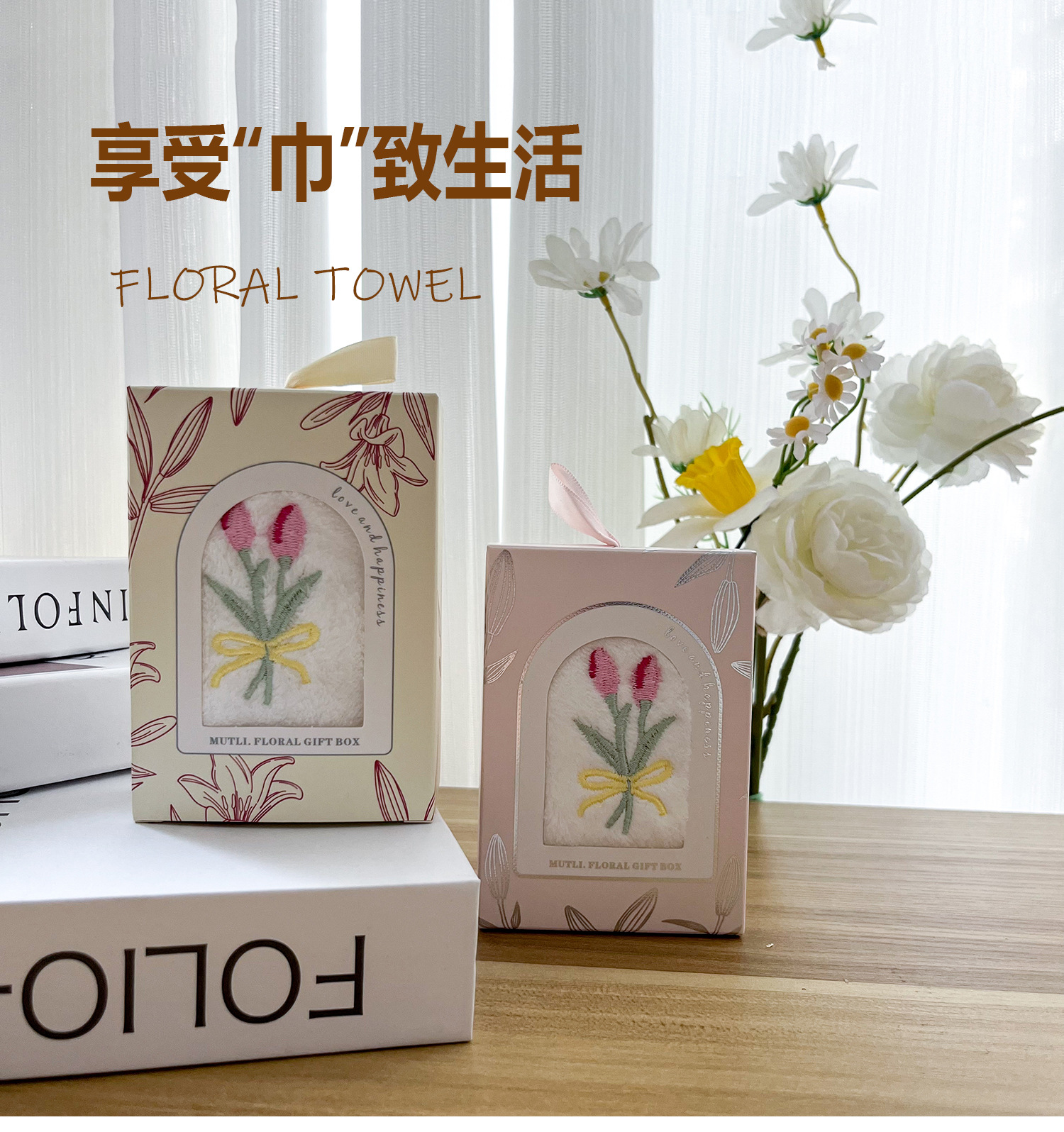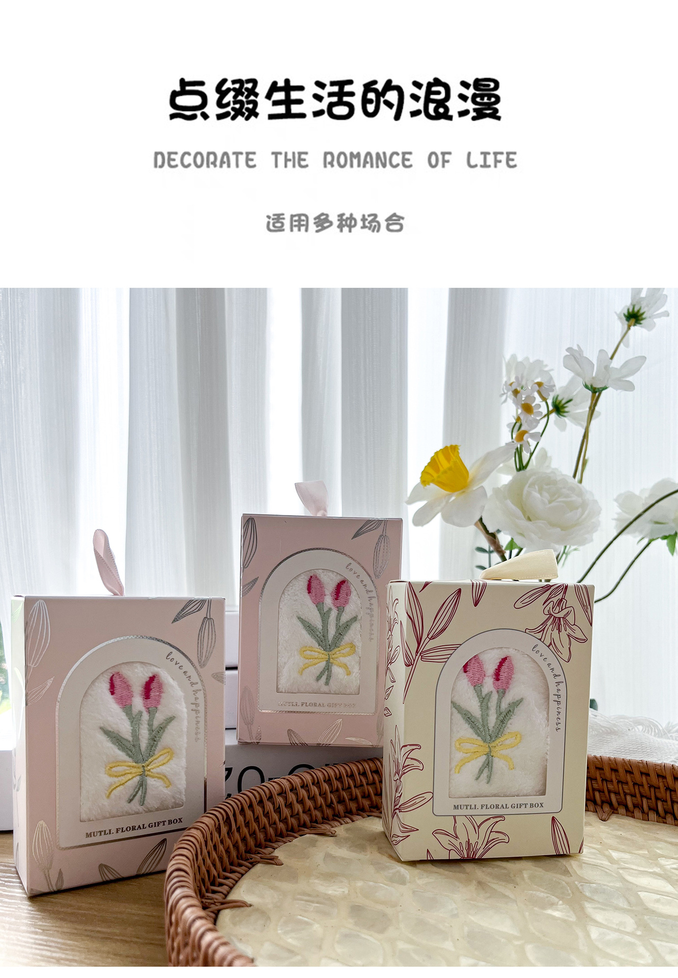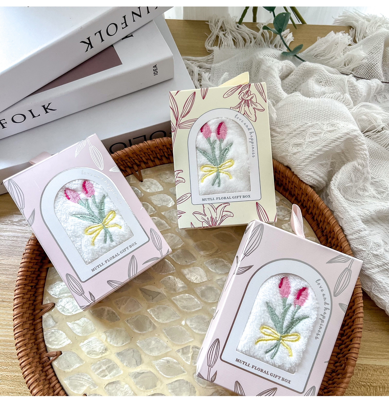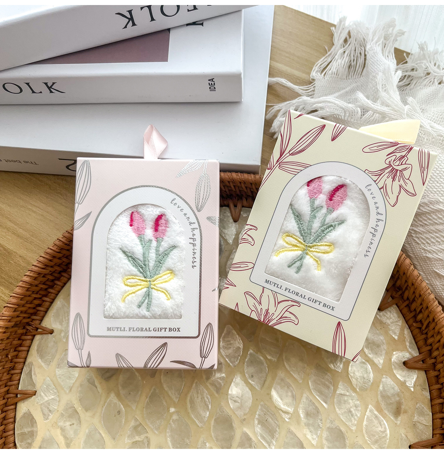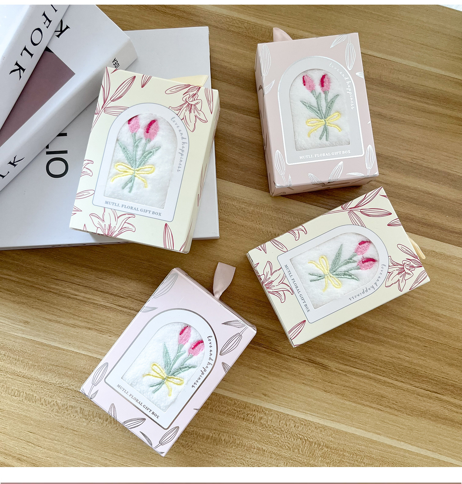 チューリップ刺繍タオル ウェディング フェイスタオル ブライズメイド ハンドタオル ハンカチ ギフトバッグ お土産 ギフトボックス入り
