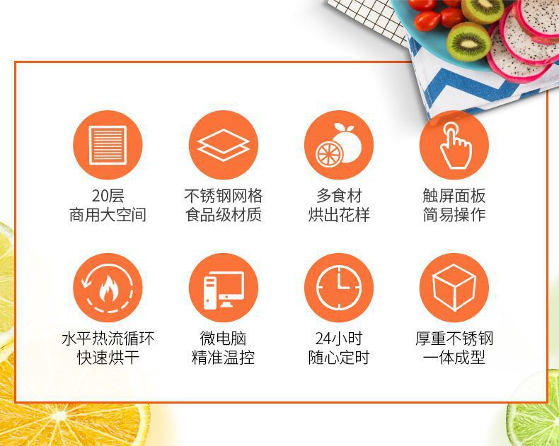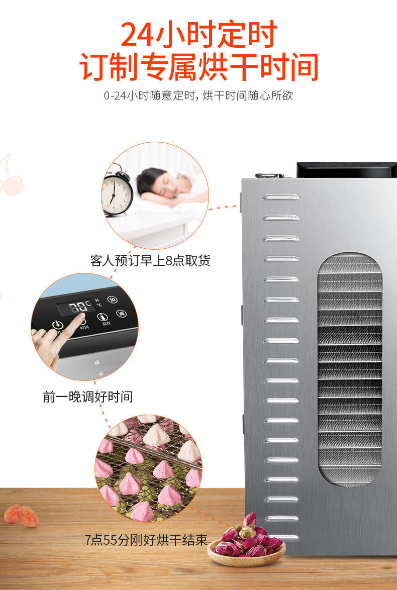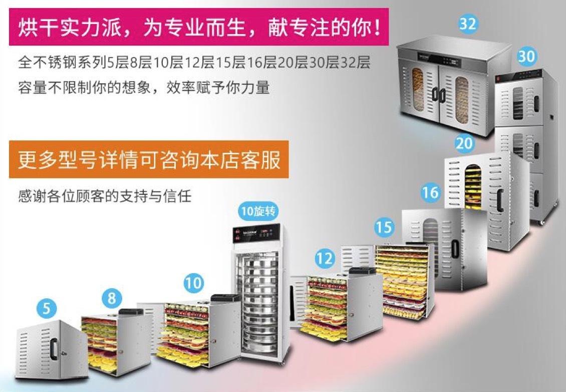跨境新款大容量食品烘干机不锈钢商用烘干水果蔬菜食物脱水干果机