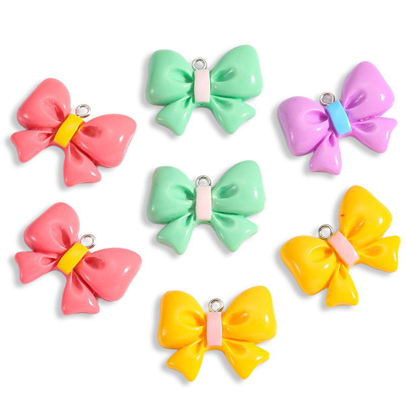 跨境热销多色立体蝴蝶结树脂挂件手工DIY项链手链钥匙装饰吊坠
