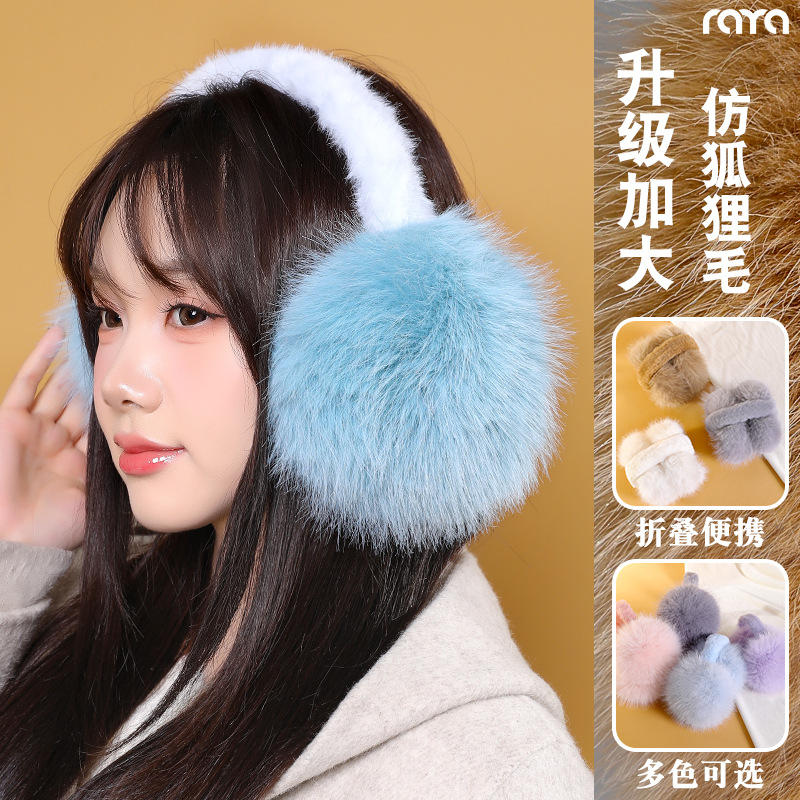 升级仿狐狸毛光版折叠耳罩纯色简约护耳包保暖秋冬防寒冷耳捂YA