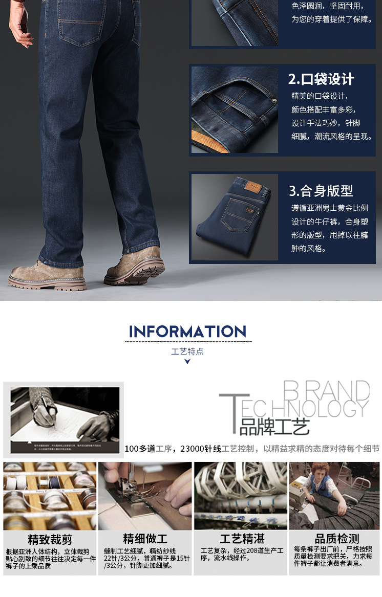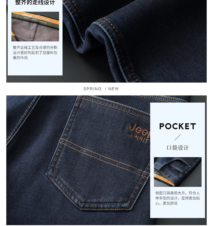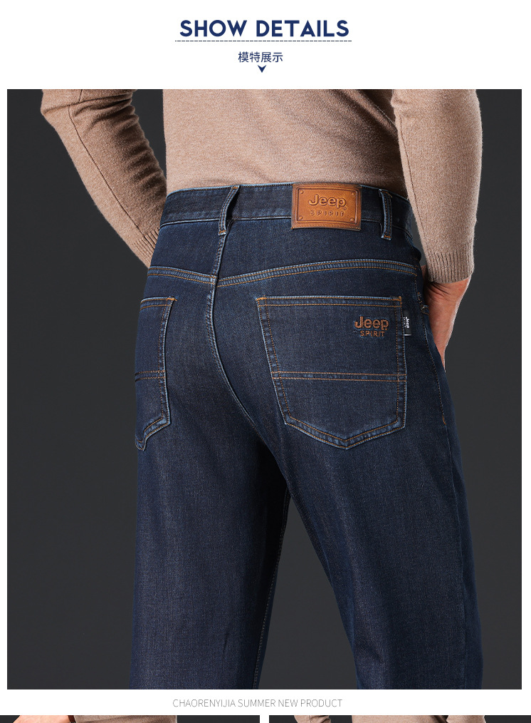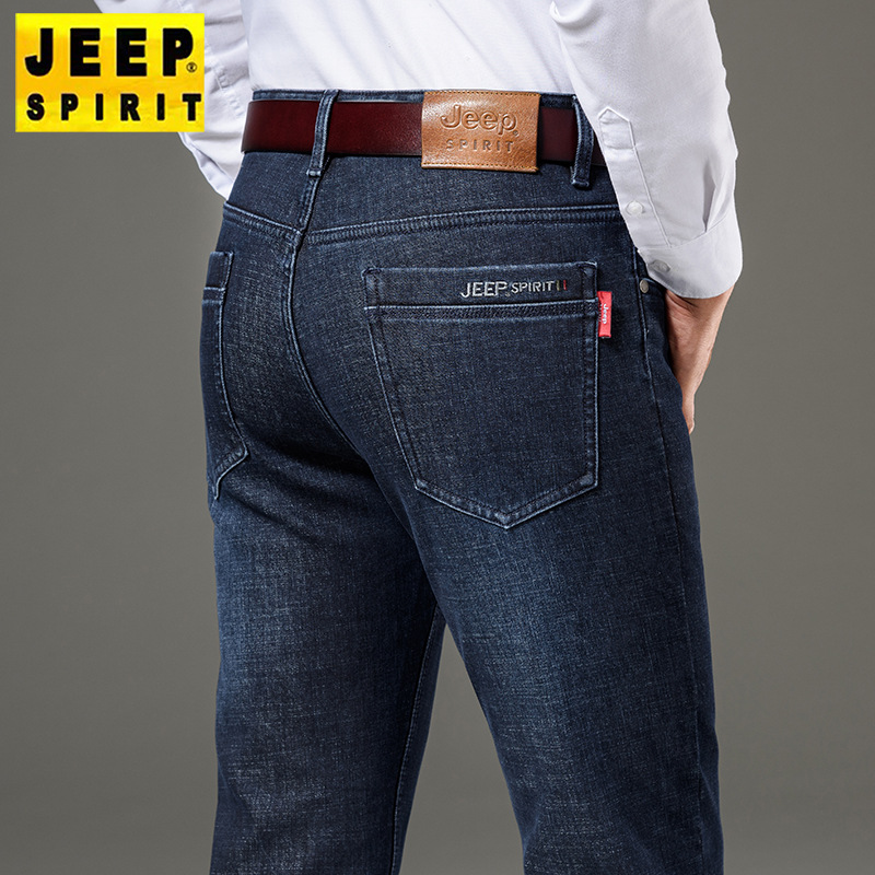 秋冬新品メンズジーンズビジネス水洗いロングパンツゆるいストレートストレッチ中腰刺繍厚手J8046