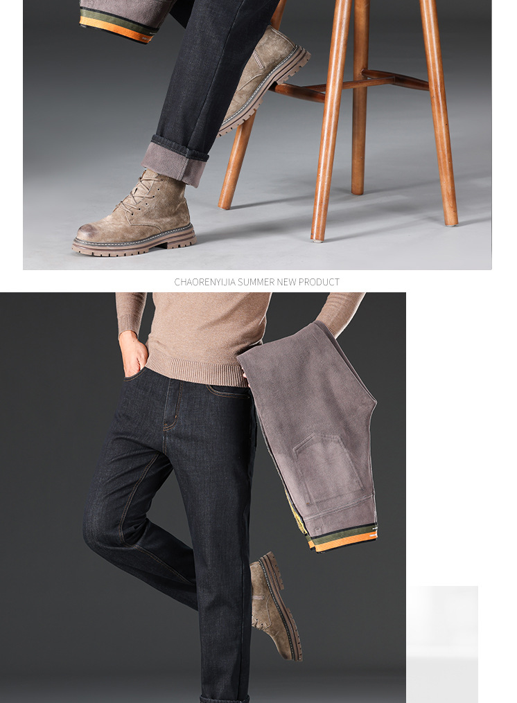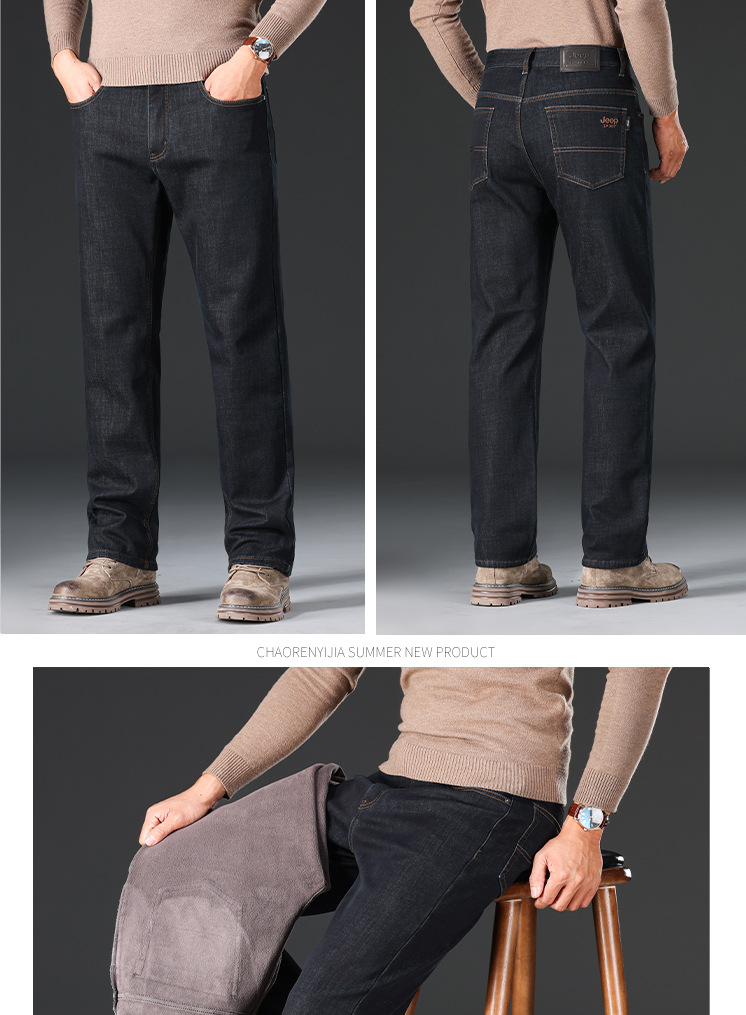 秋冬新品メンズジーンズビジネスカジュアルゆるいストレートストレッチ中腰綿長ズボン厚手J8033