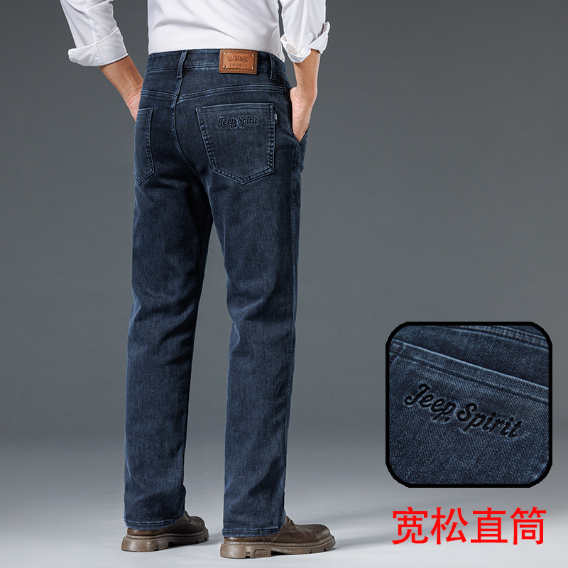 罗蒙冬季加绒牛仔裤男宽松直筒秋冬款男裤弹力中年加厚保暖长裤子