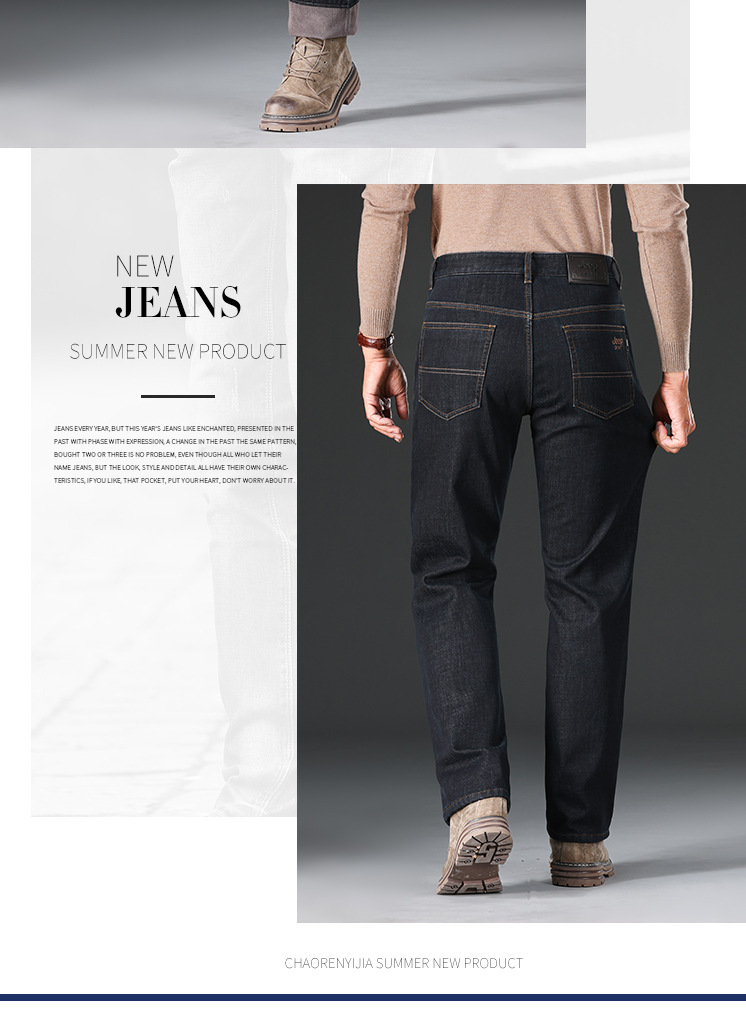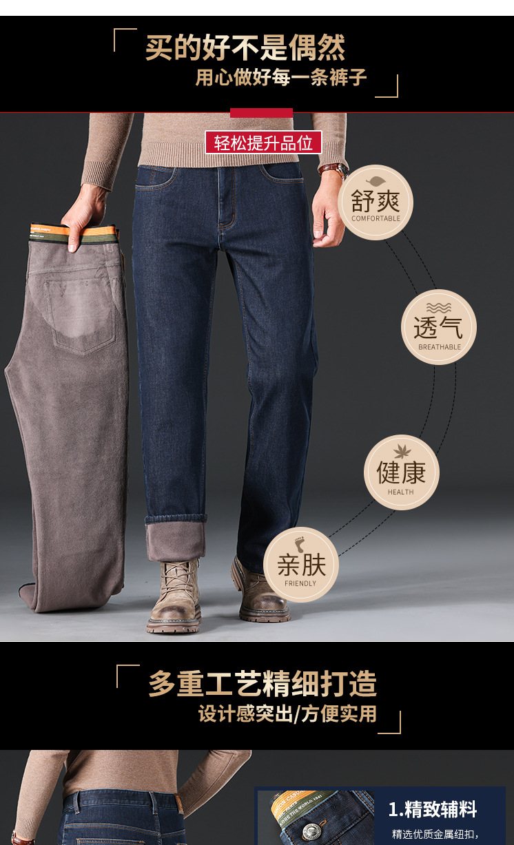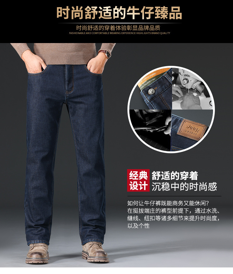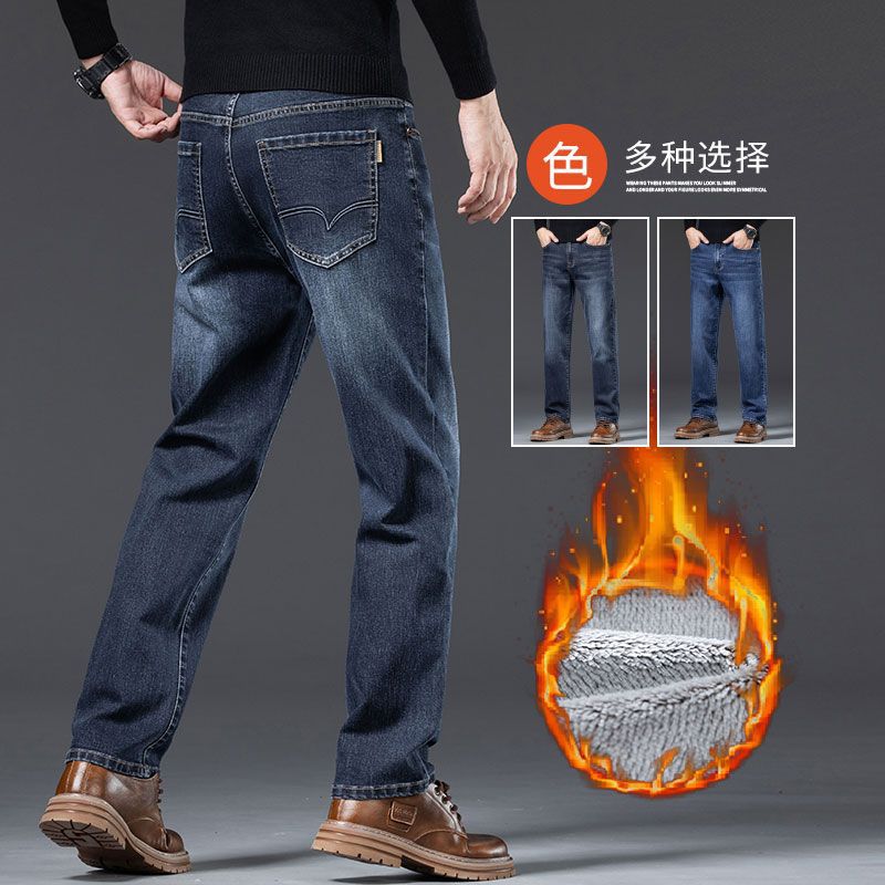 秋冬新品メンズジーンズビジネスカジュアルゆるいストレートストレッチ中腰ベルベット厚い耐摩耗性j8019
