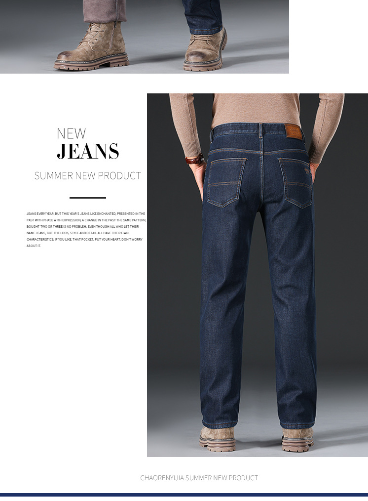 2024秋冬男性ストレートジーンズ水洗い長ズボンブルー弾力ゆるい厚さ保温耐摩耗性J768