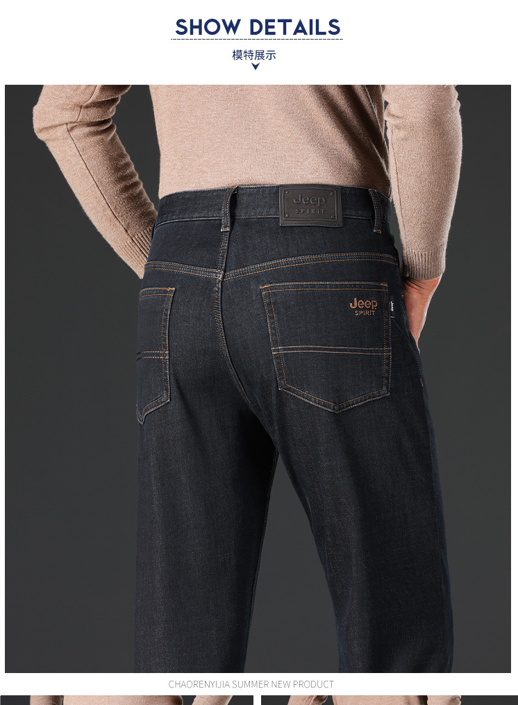 秋冬新品男士品牌牛仔裤商务休闲宽松直筒弹力中腰刺绣厚款J9006
