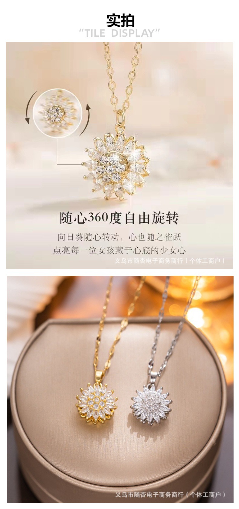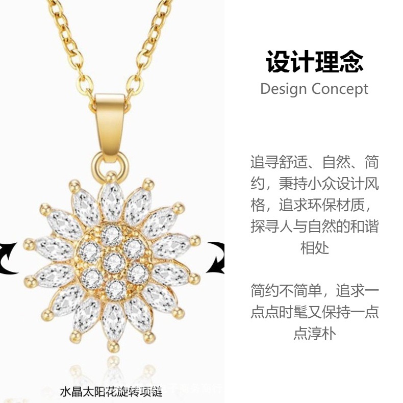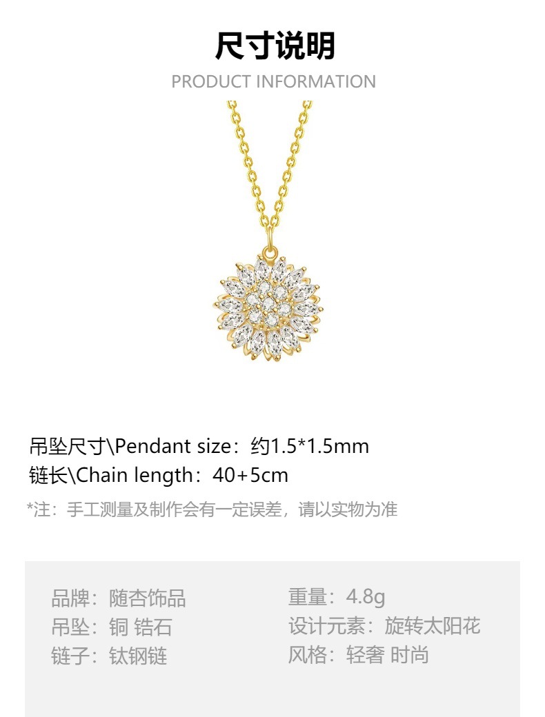 ネックレス レディース 欧米風 インフルエンサー向け クロスボーダー ひまわり型 ジルコン回転装飾 360度回転鎖骨チェーン