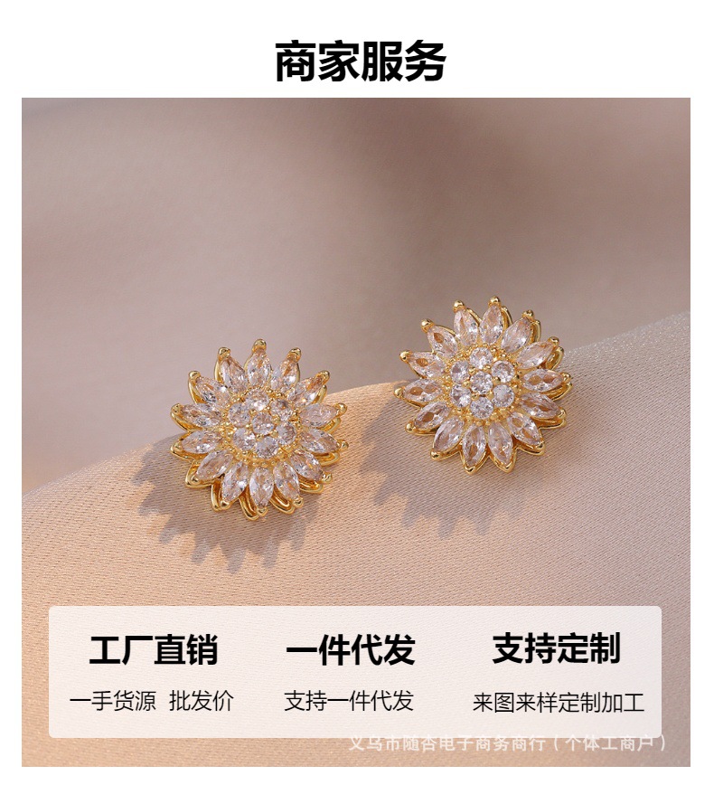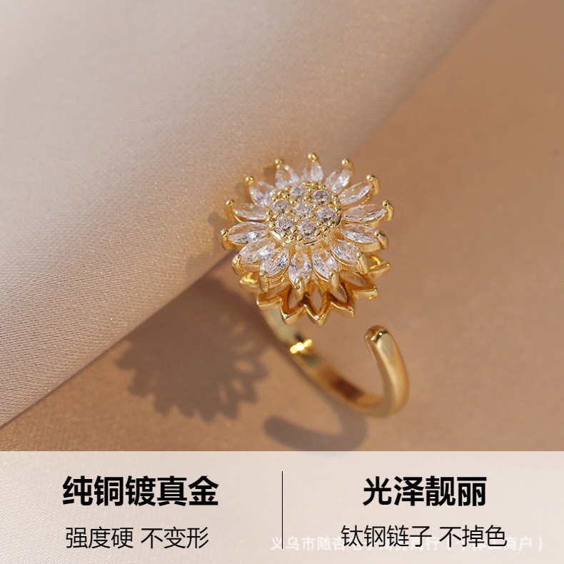 回転式ひまわりリング、高級ジルコンブレスレット、鎖骨チェーン、ダイヤモンドジュエリー、フルダイヤモンドネックレス、ペンダントイヤリング