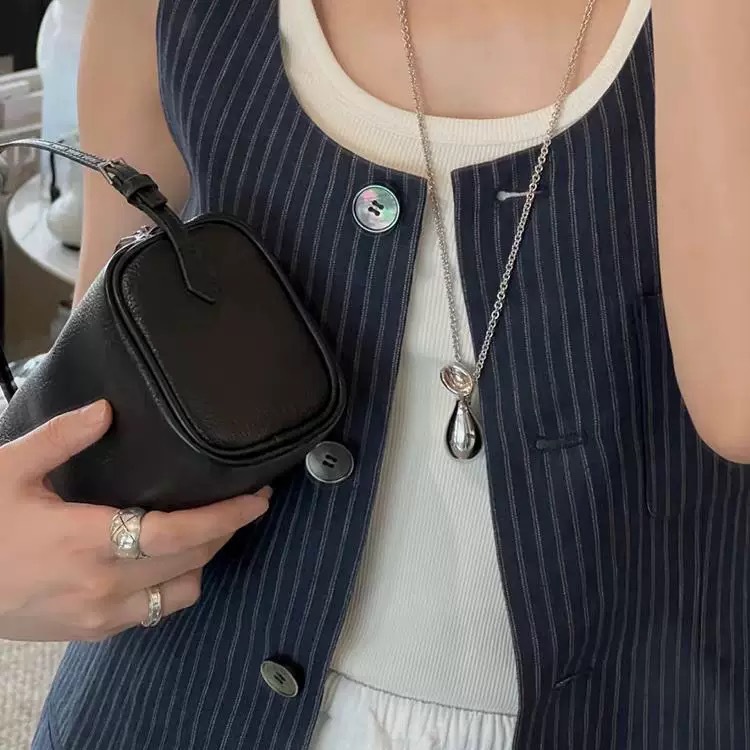 新しいライト高級ニッチネックレス Ouni 同じスタイルシルバーロングセーターチェーンウォータードロップソリッドポニーアイペンダントネックレス