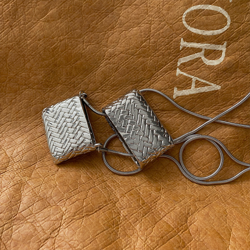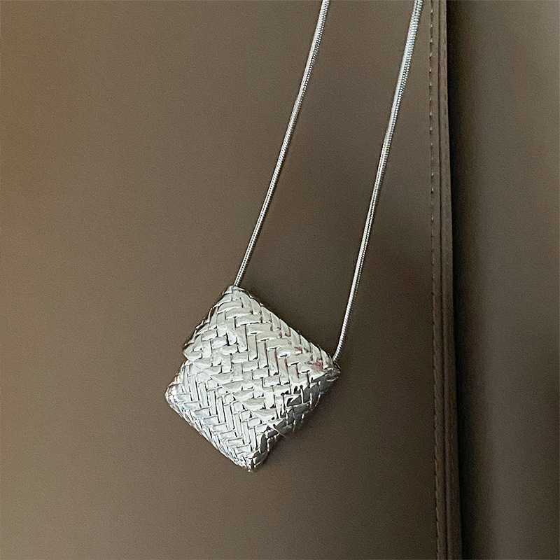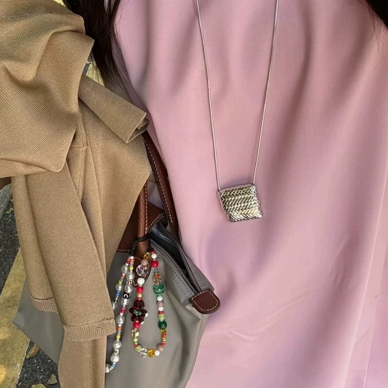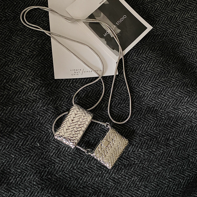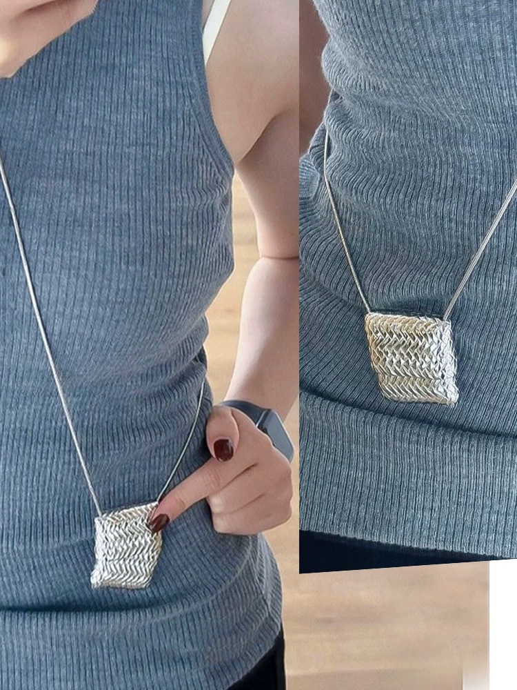 韓国ins小衆小包ネックレスレトロ軽豪華ロングタイプシンプルデザイン高級感シルバー編みバッグネックレス