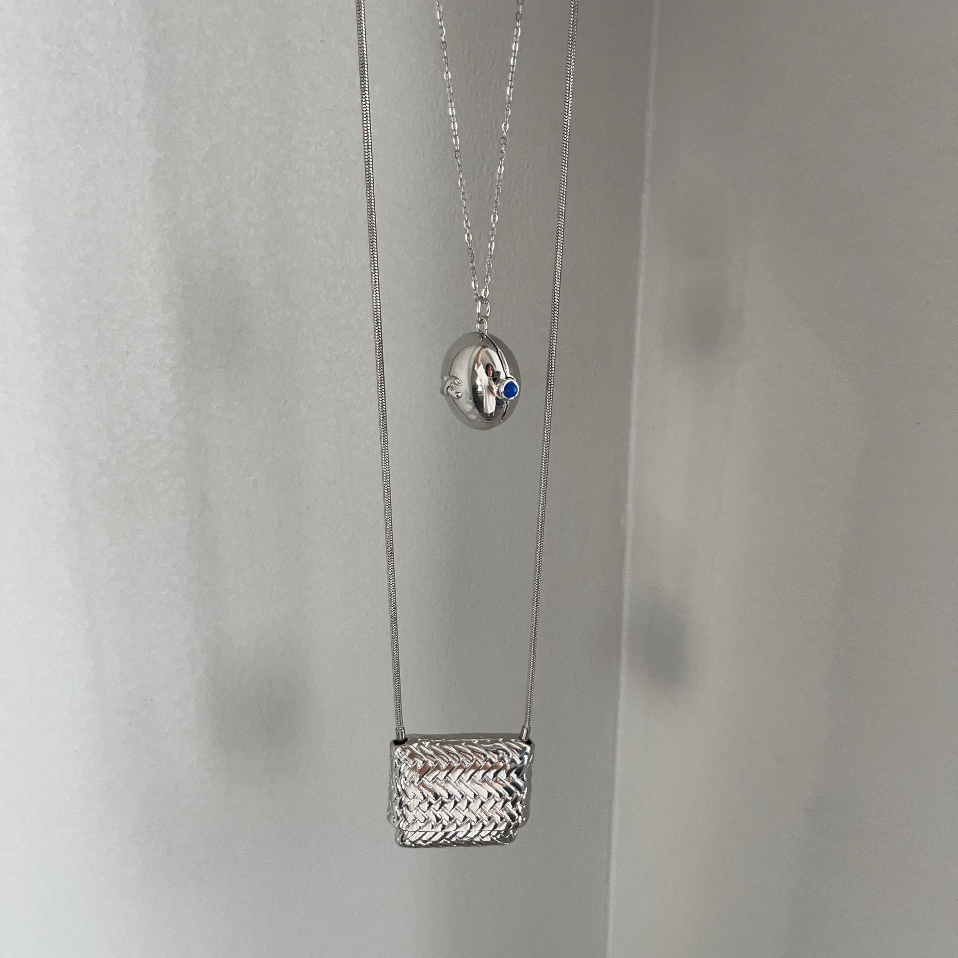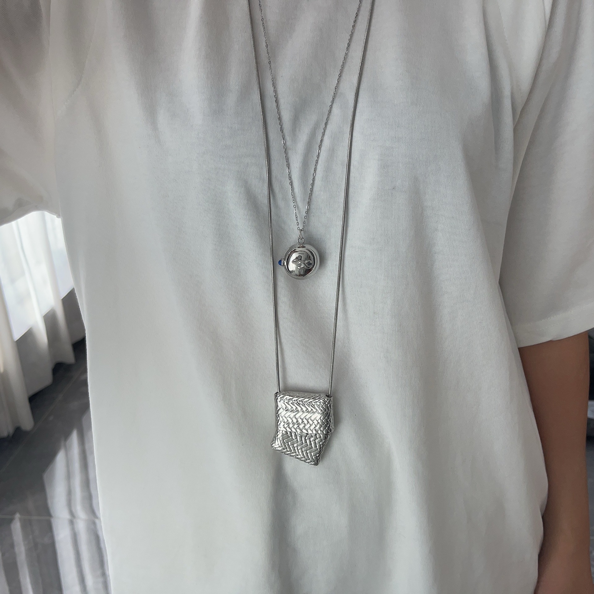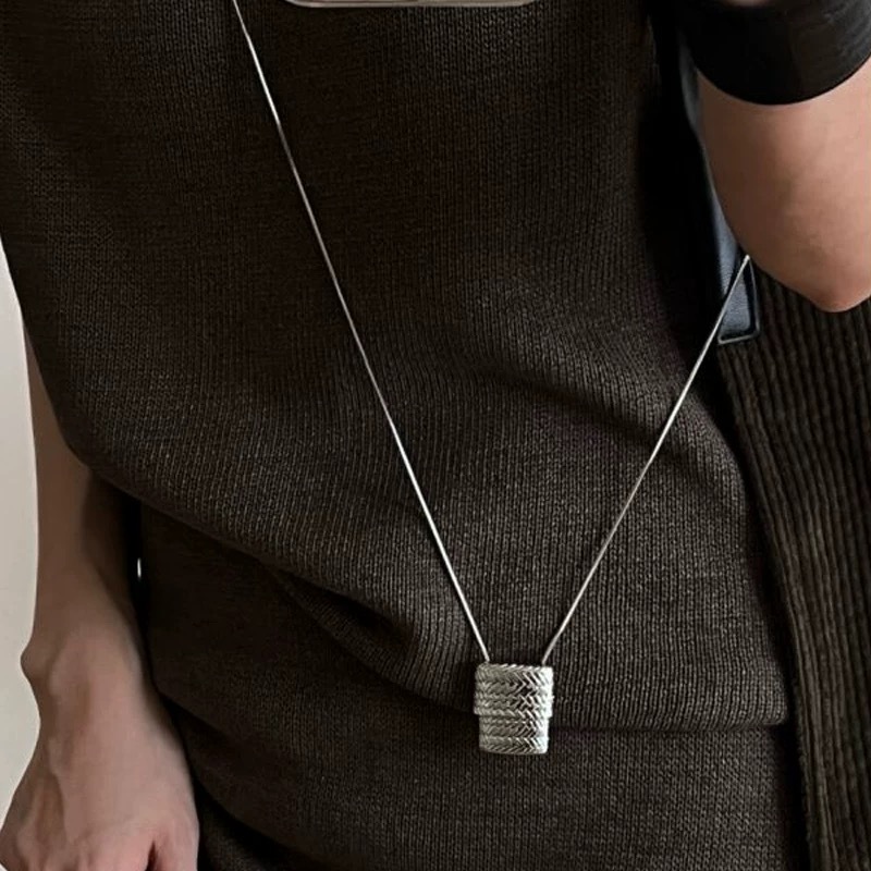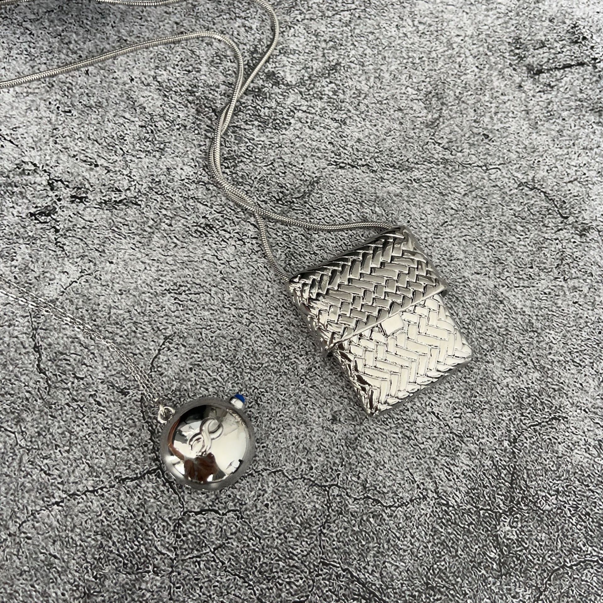 韓国ins小衆小包ネックレスレトロ軽豪華ロングタイプシンプルデザイン高級感シルバー編みバッグネックレス
