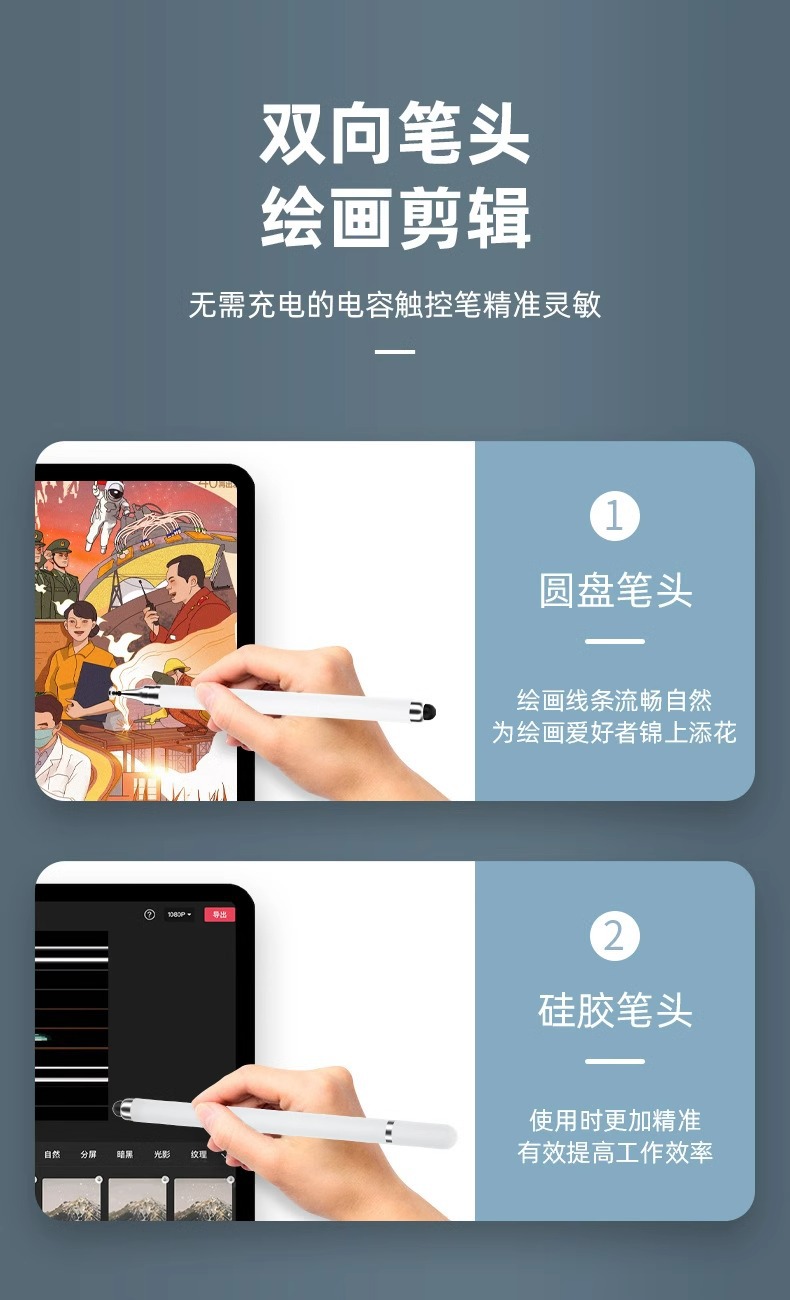 触屏电容笔手机平板通用触控笔绘画手写笔点修图高精度剪辑触摸笔