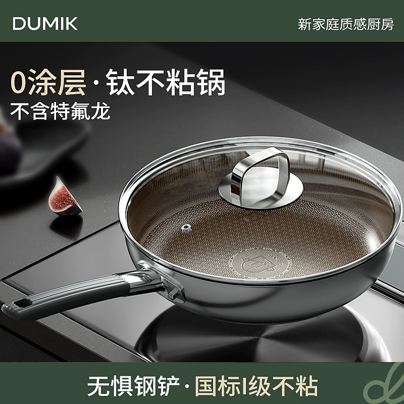 コーティングされていないチタンシールドパン家庭用ステンレス鋼ノンスティックステーキフライパンハニカムオムレツガスストーブ電磁調理器