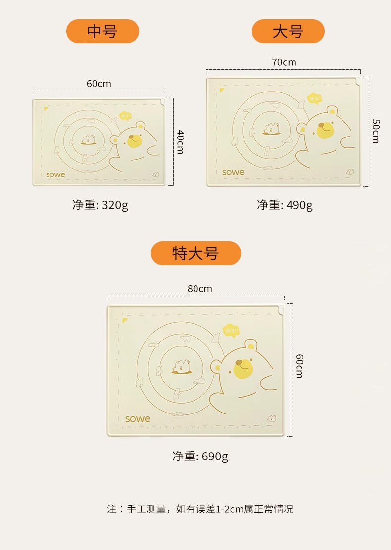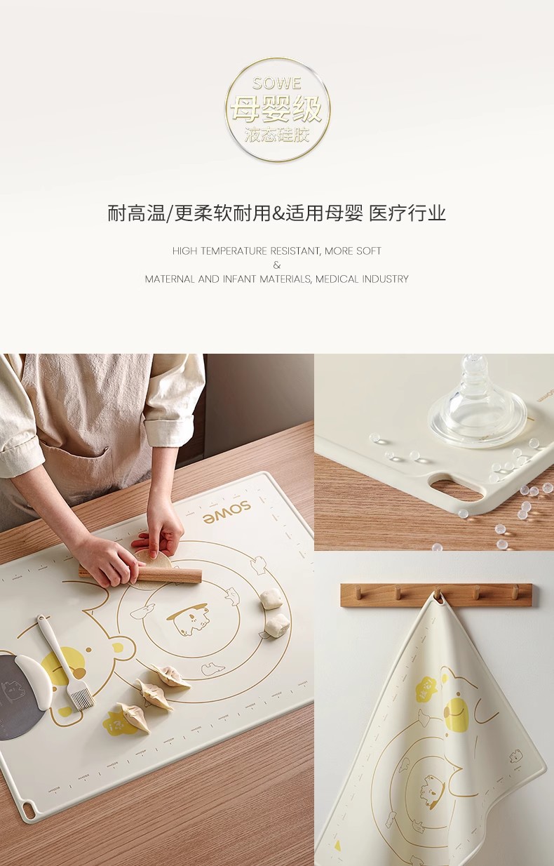 Sowe母子級液体シリカゲル揉み面マット厚い食品級焙煎パネルまな板家庭用めん類と麺マット