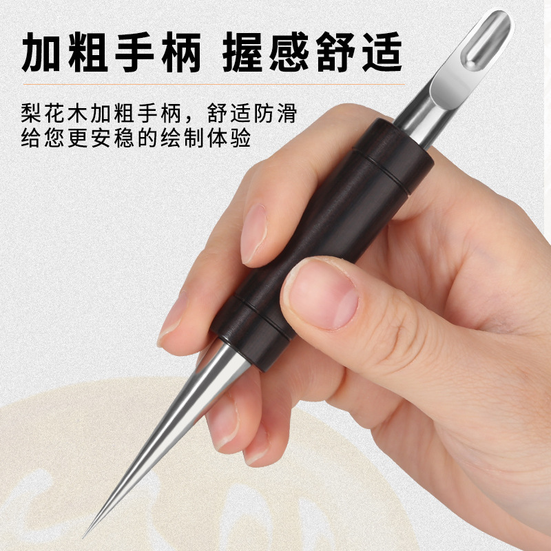 コーヒーラテアート針 ステンレス彫刻針 無垢材ローズウッド ラテアート針 フラワーアートペン