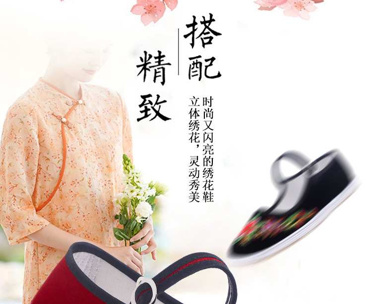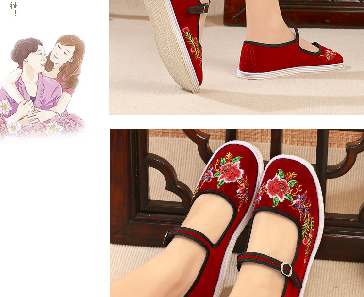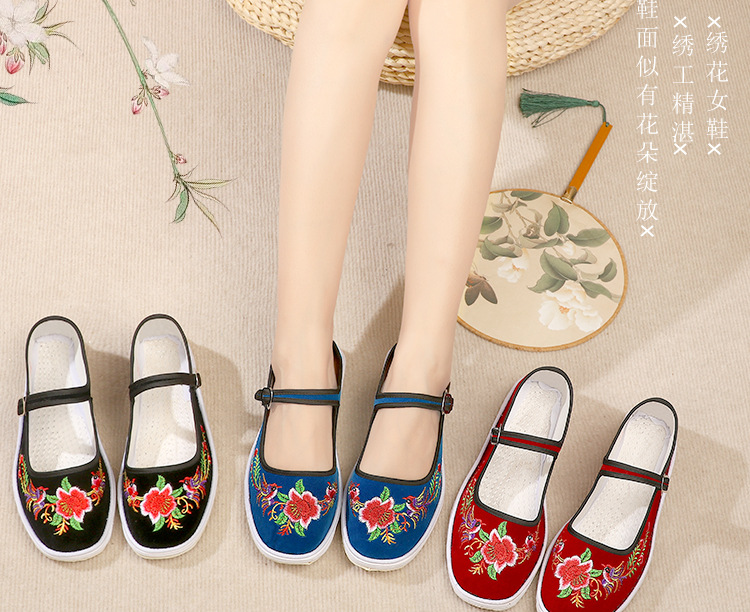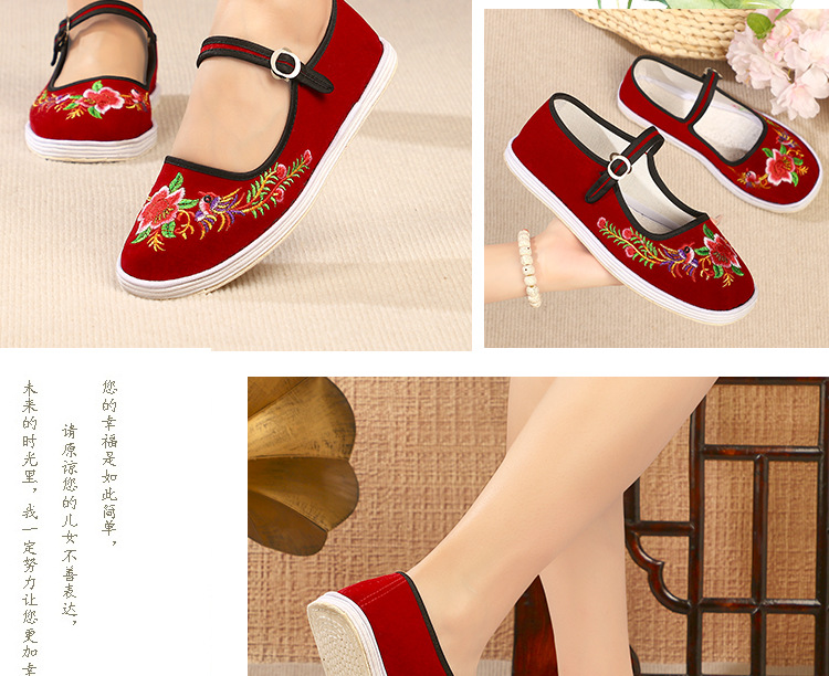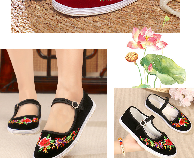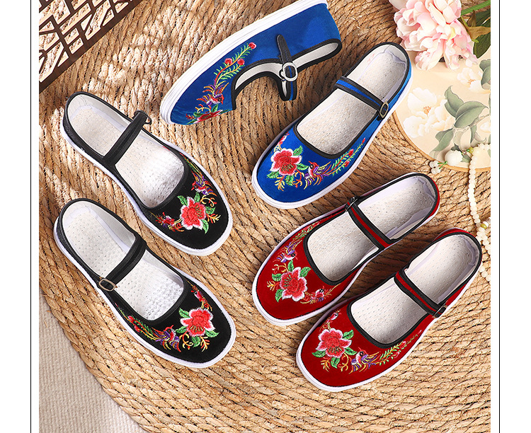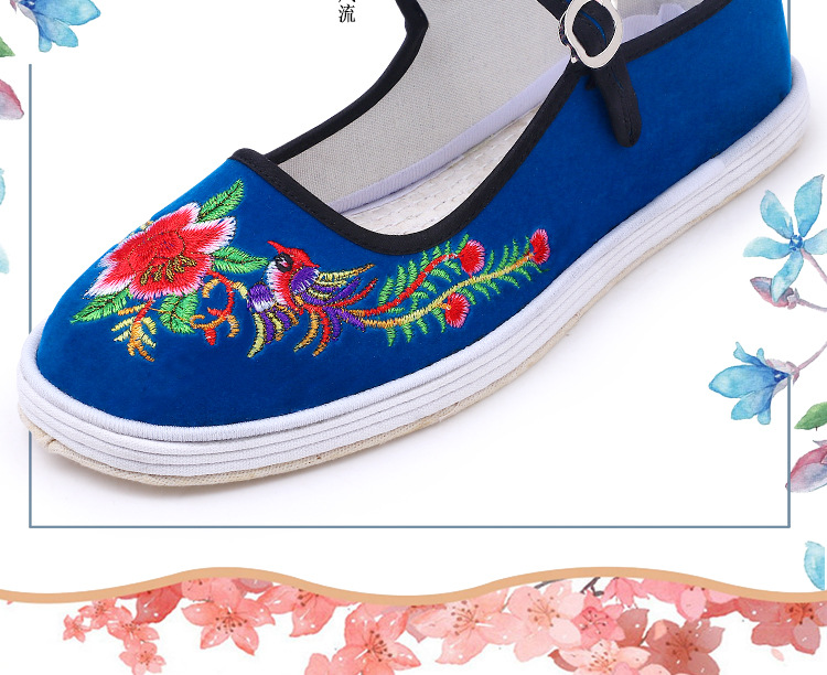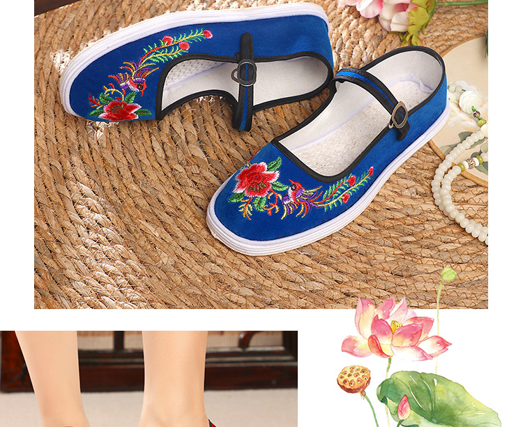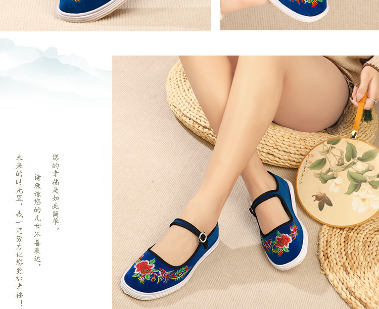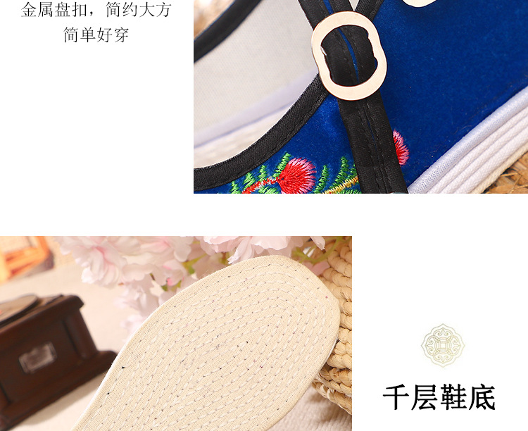 25 新しい千層布底刺繍靴女性の布靴ハイエンドエスニックスタイル布靴浅い口ワンストラップ高齢者の靴