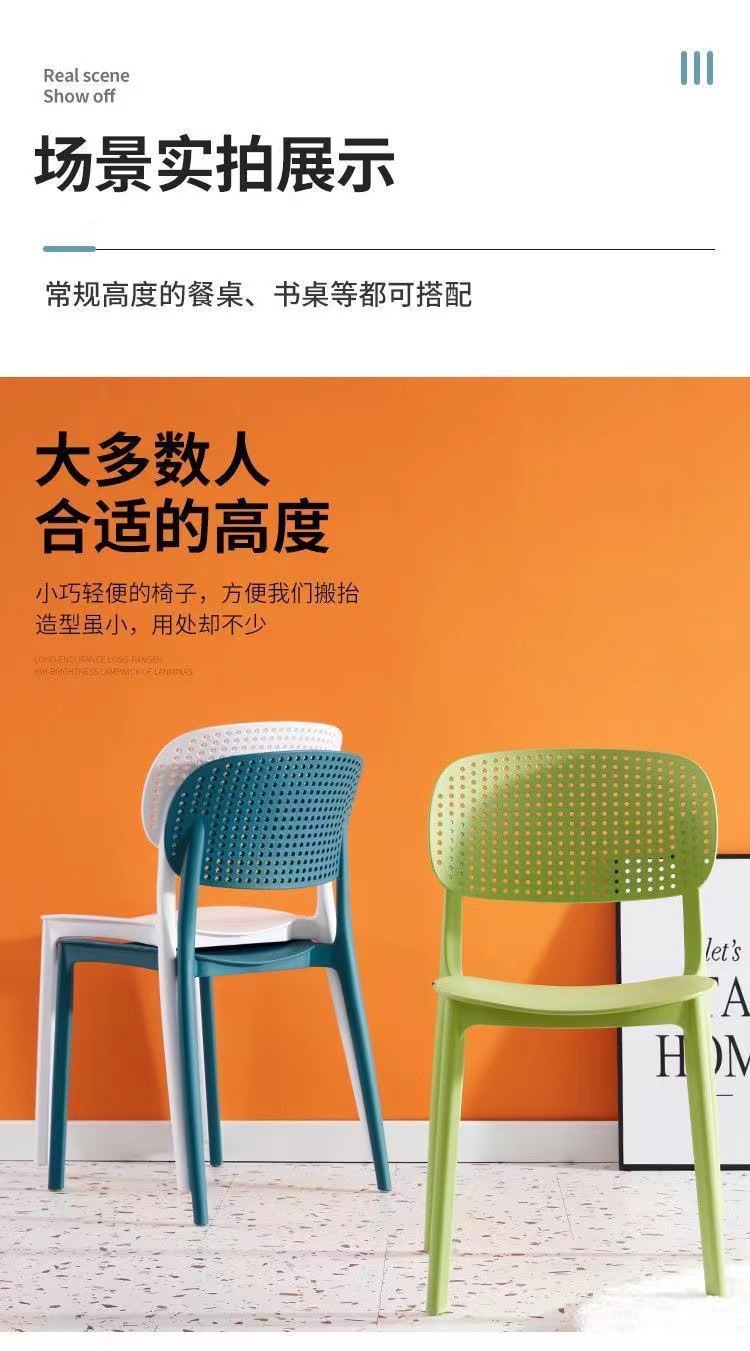 プラスチック椅子ホームレジャーダイニングチェアダイニングテーブルレストランシンプルスタッキング商業スツール背もたれ北欧クロスボーダー