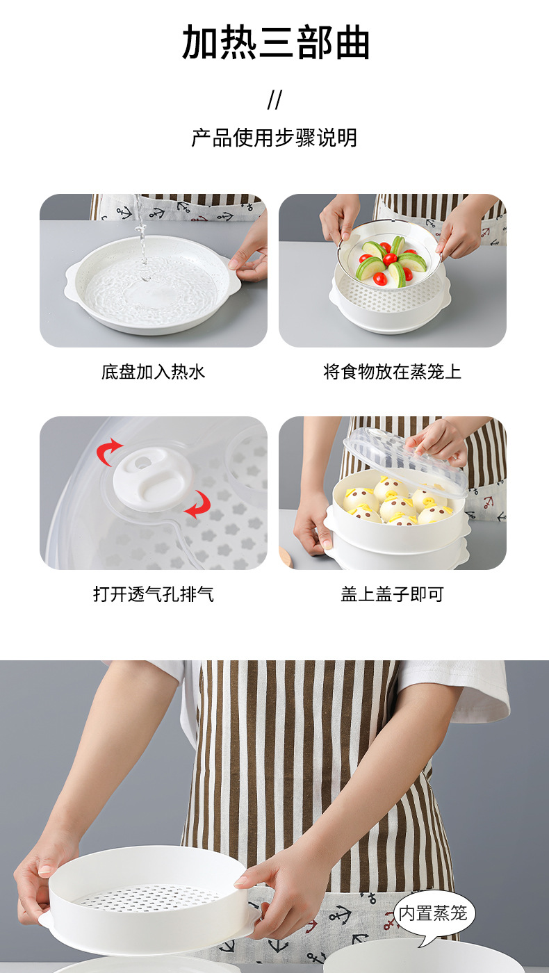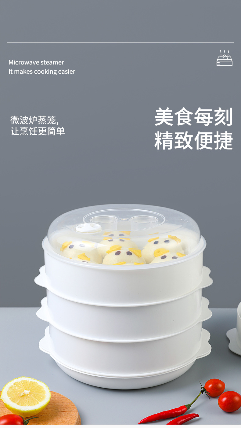 微波炉多层塑料蒸笼加热馒头包子蒸屉家用蒸格大容量蒸盘高温蒸架