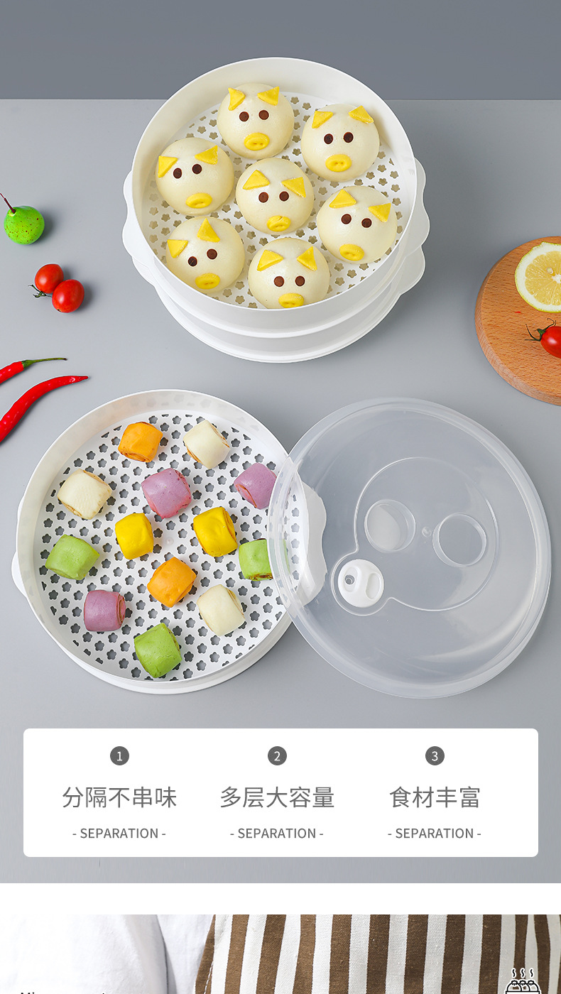 微波炉多层加热馒头包子高温蒸架蒸屉家用包子蒸格蒸盘塑料大蒸笼
