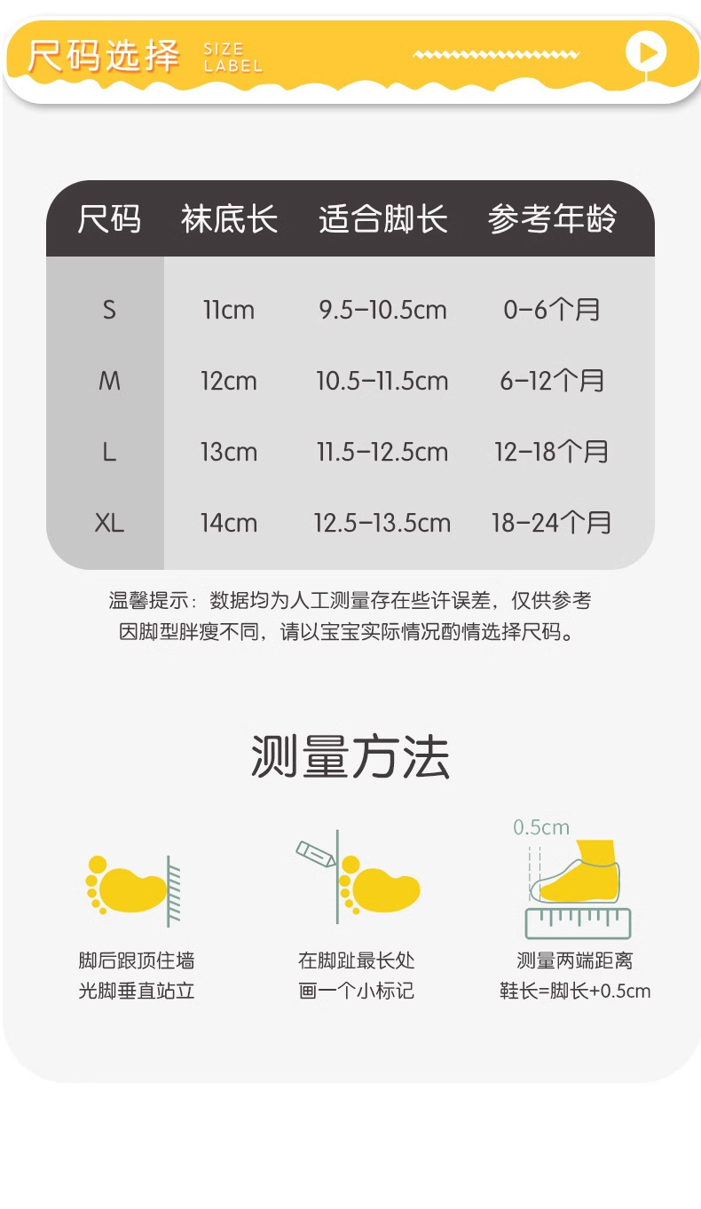 Sサイズ ベース丈 11cm 6~9ヶ月推奨,Mサイズ ベース長さ 12cm 10~12ヶ月推奨,Lサイズ 裾丈 13cm 13~18ヶ月推奨,XLサイズ ベース長さ 14cm 18-24ヶ月推奨