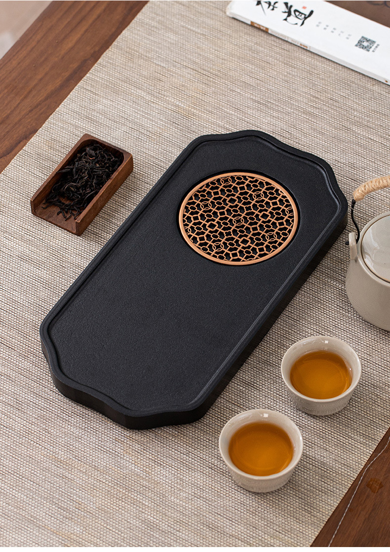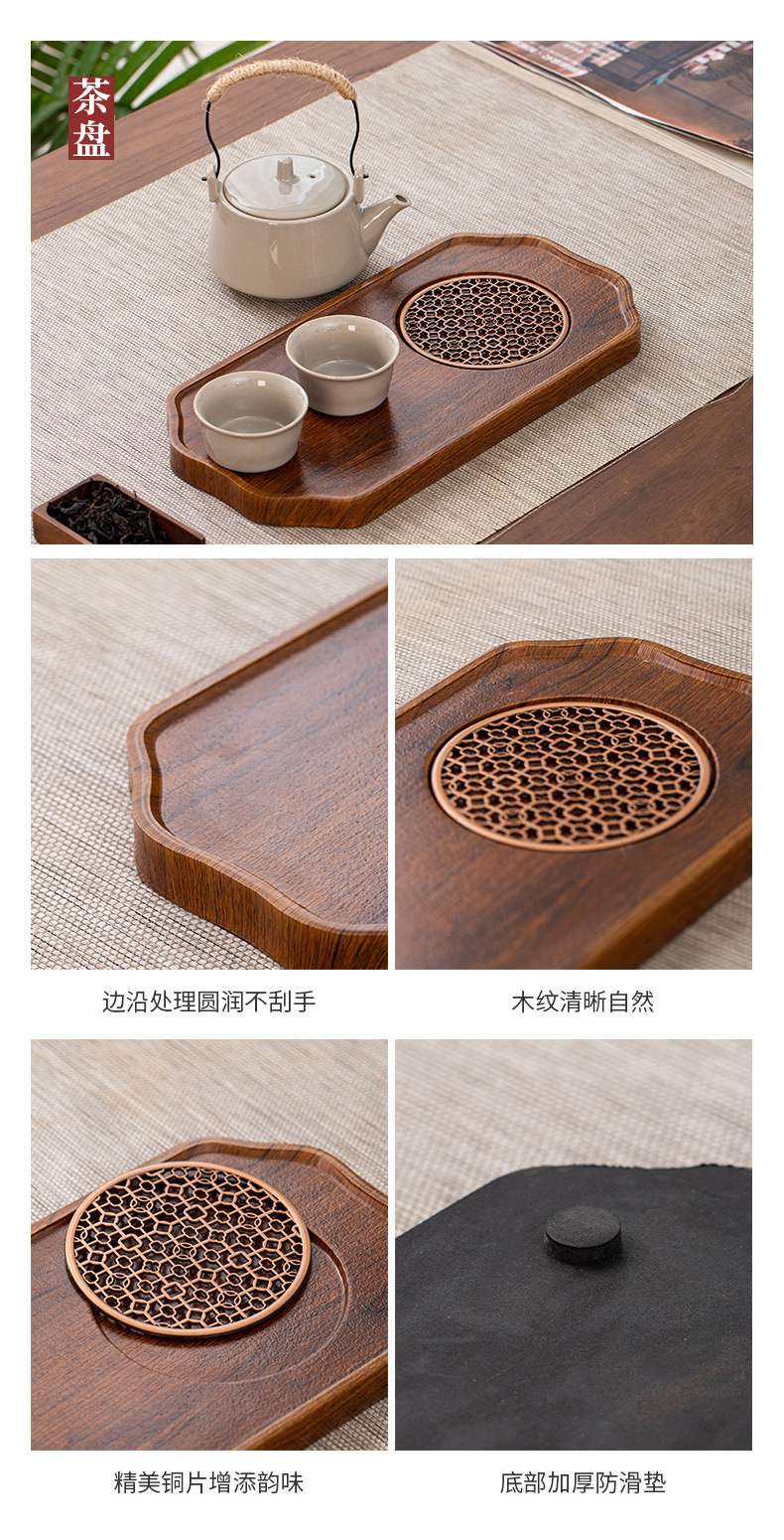 中国トレイハイエンドティートレイ家庭用ライト高級シンプルなテクノロジー木製小さなグリッドドライバブルトレイレトロティーマット