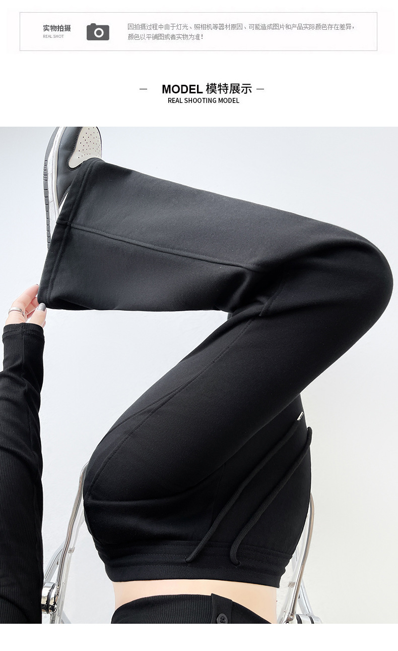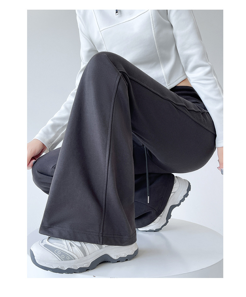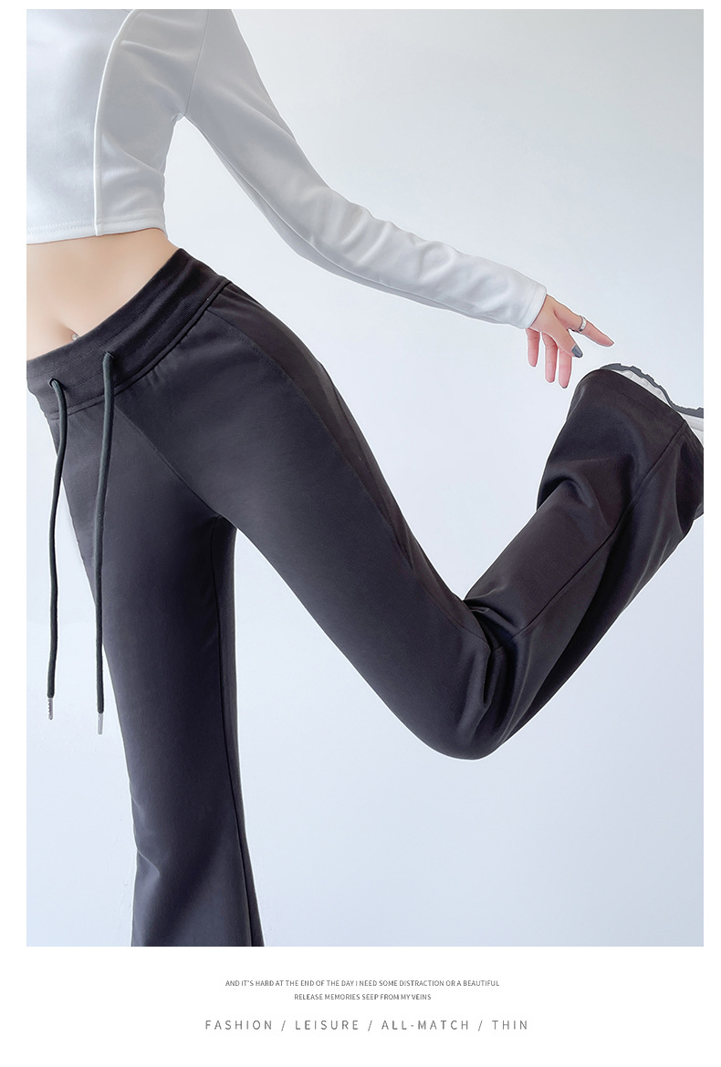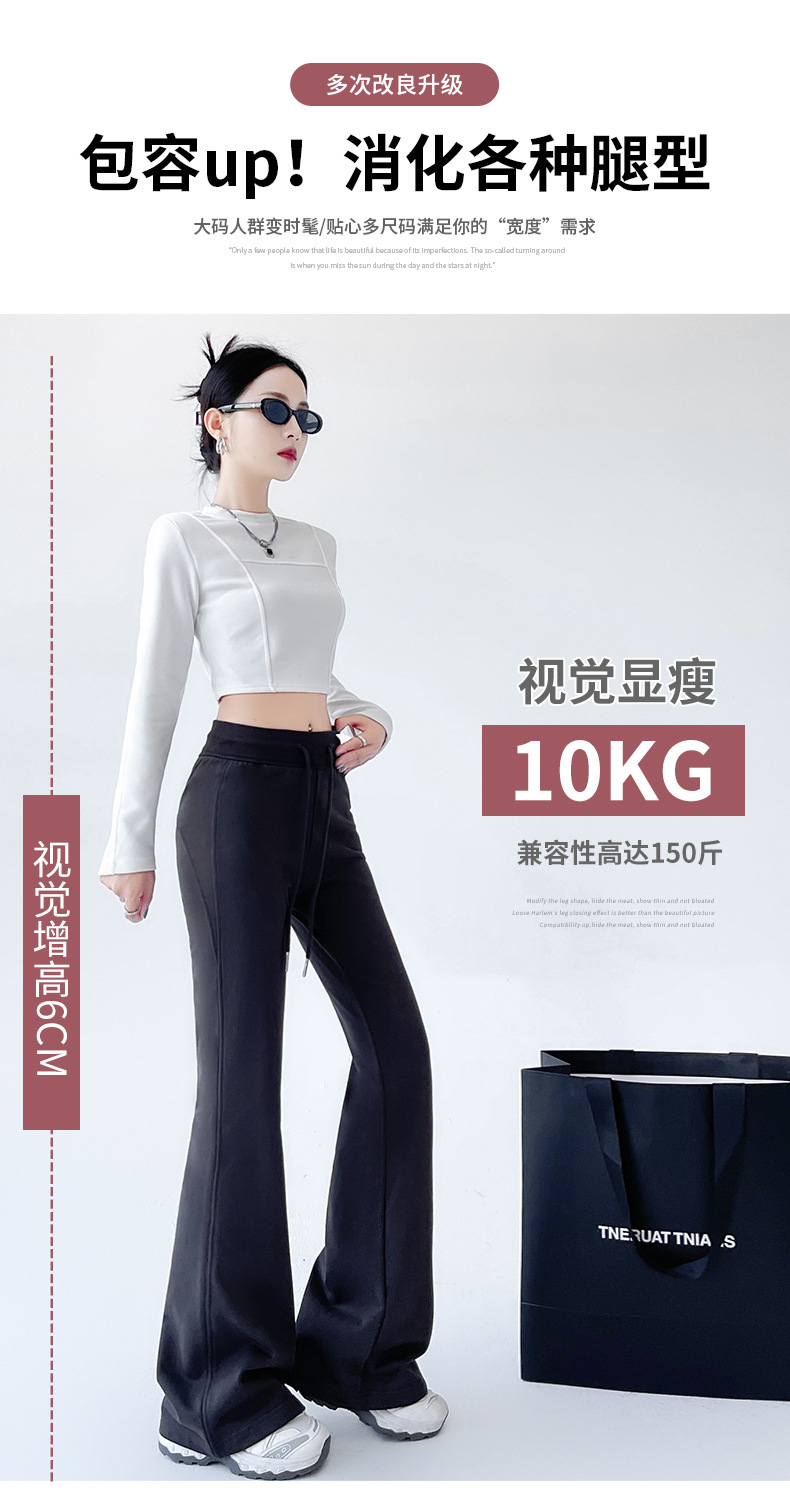 加绒美式休闲微喇裤卫裤女秋冬宽松高腰抽绳直筒运动裤高腰阔腿裤