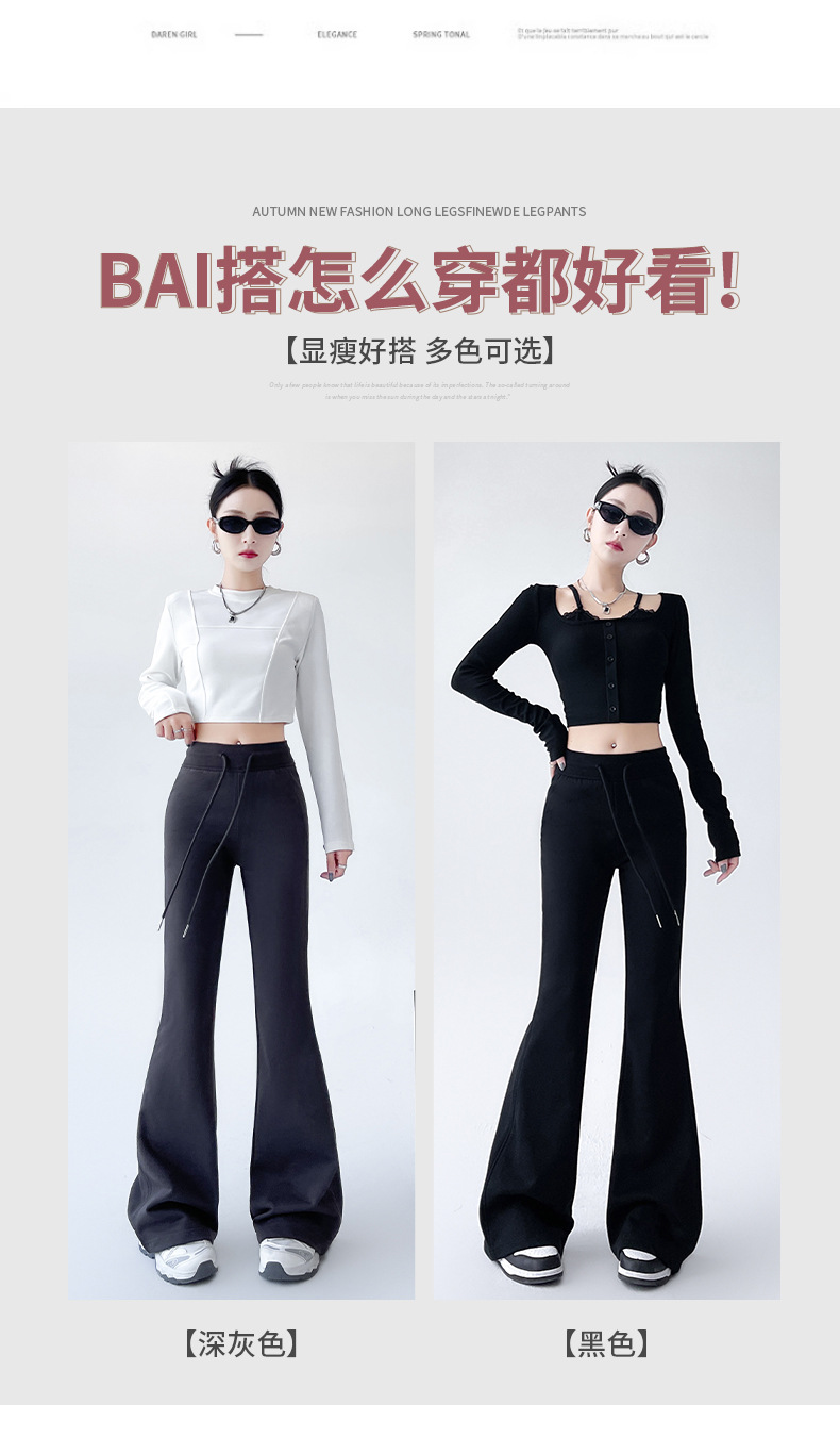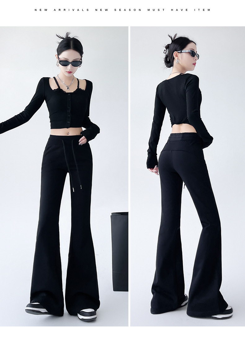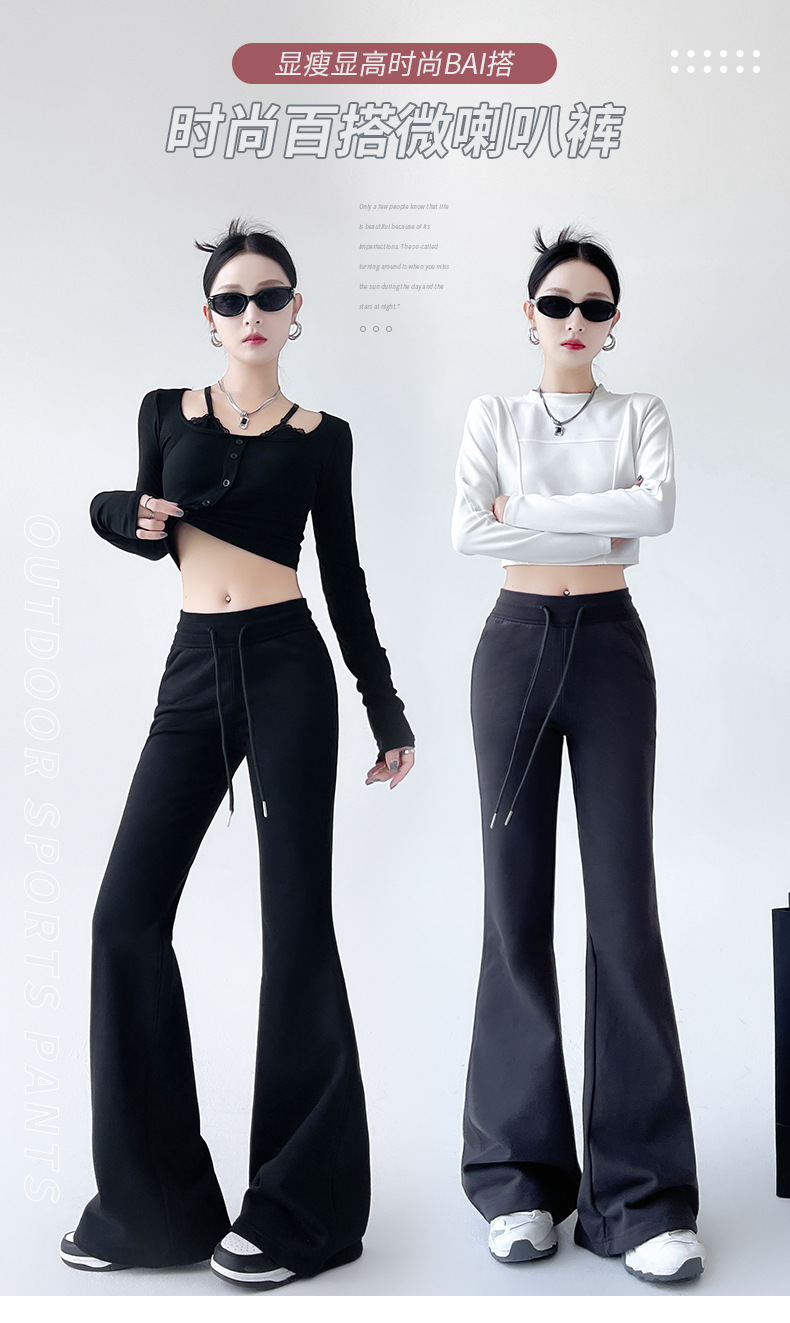 美式低腰微喇卫裤女秋季新款宽松垂感马蹄裤慵懒风休闲运动喇叭裤